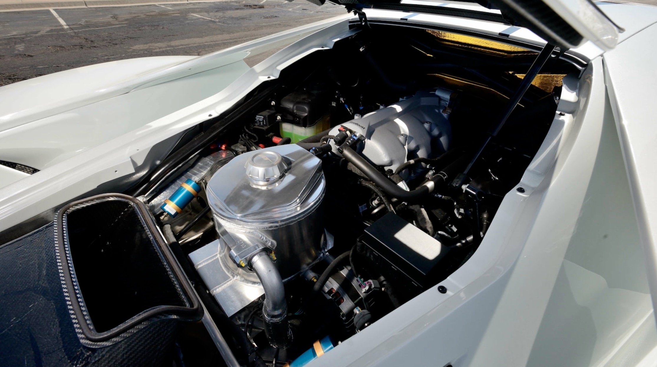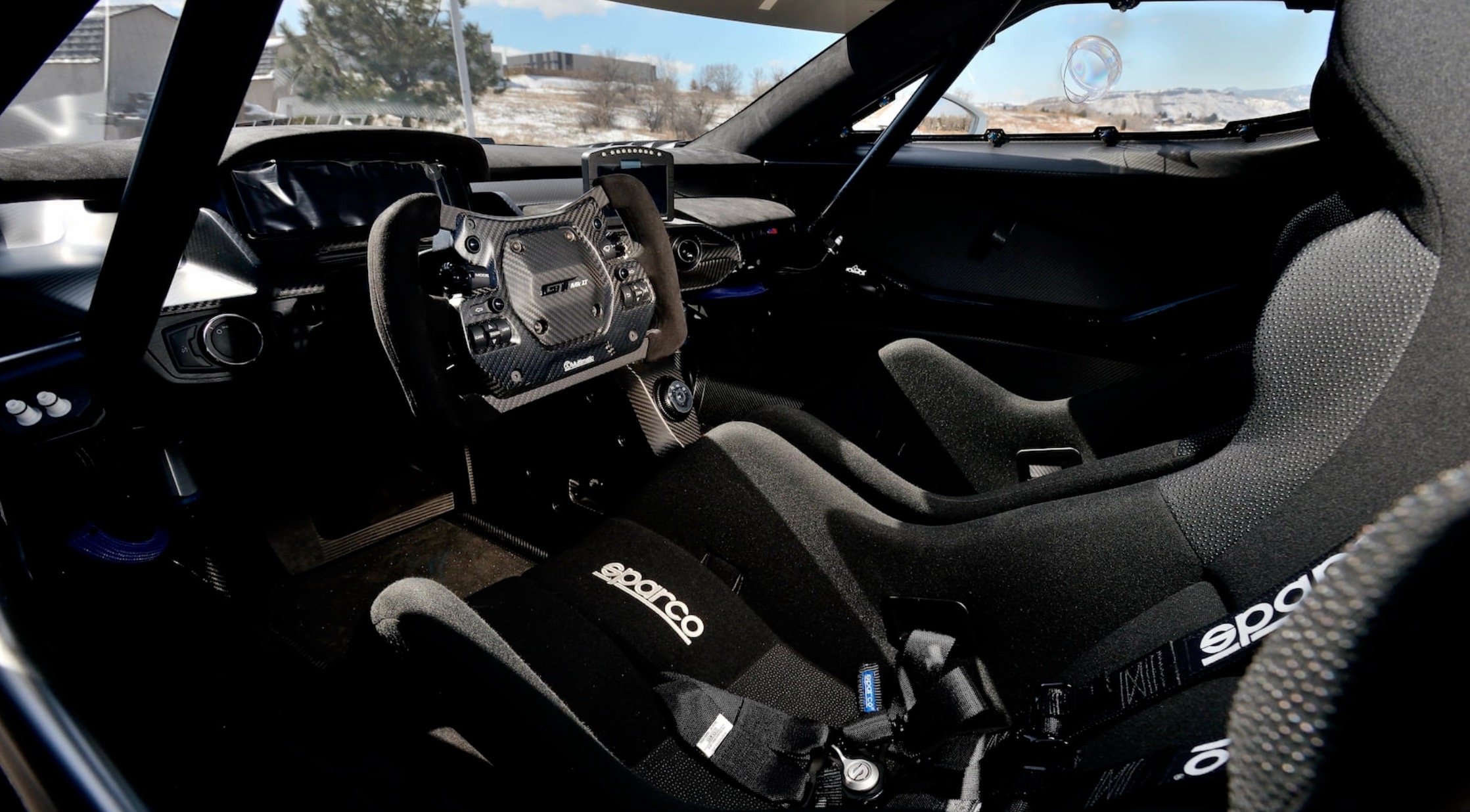 The GT MK II was the first factory Ford product to cost more than a million dollars and was the most extreme track toy to ever come from the Blue Oval. It has Sparco racing seats with six-point harnesses, an FIA-compliant roll cage, an internal jack system, race-derived, five-way adjustable Multimatic DSSV dampers, 400 percent more downforce than the regular GT, and a roof scoop that keeps the engine, clutch, and transmission cool.