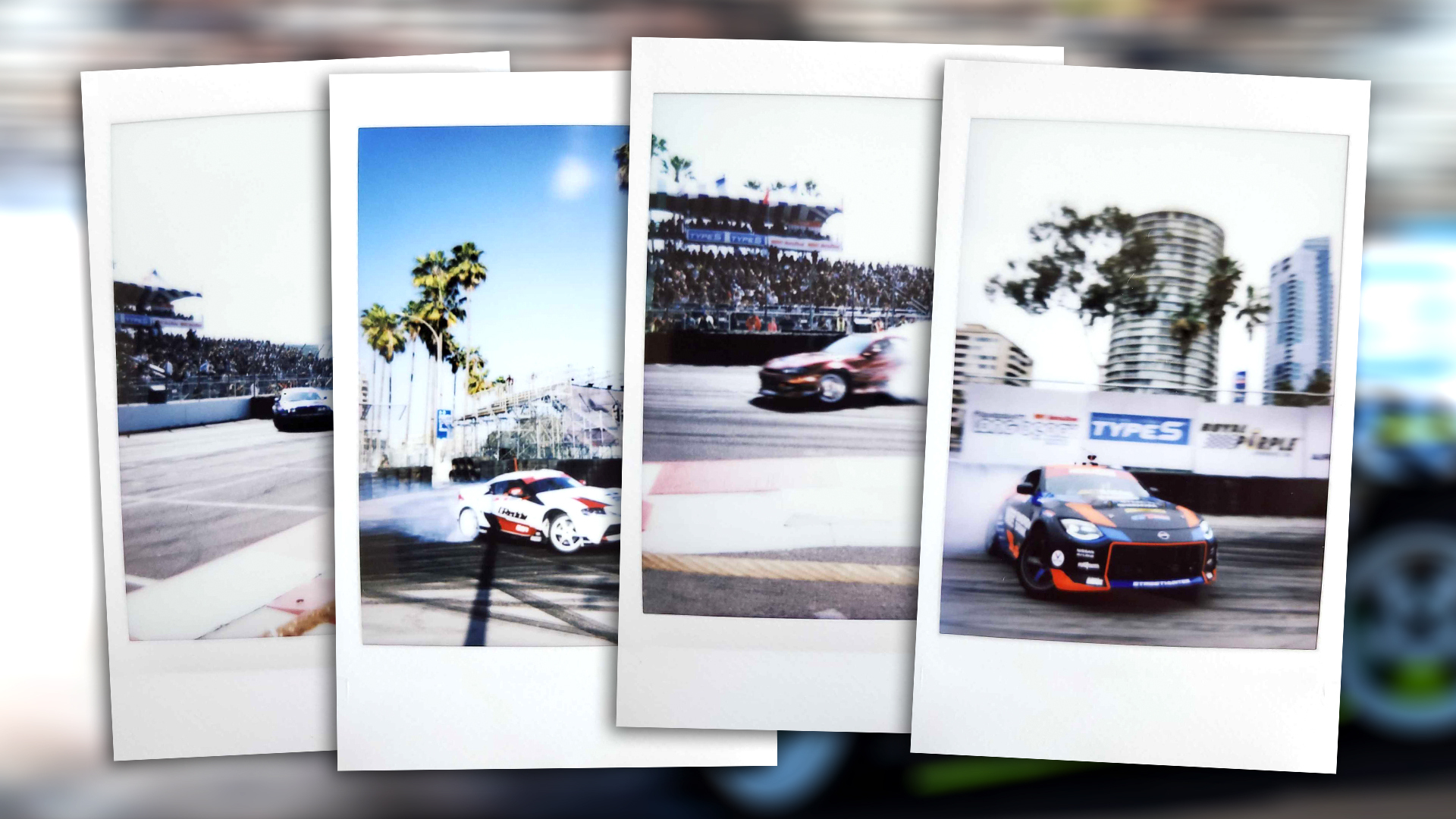 In addition to seeing awesome cars throw themselves sideways around turns, another wonderful thing Formula Drift gives us is the opportunity to practice photography. You’re usually sitting close enough that you can grab at least a couple of really cool photos. Just for fun, I thought I’d bring my cheap instant camera to this past weekend’s Long Beach season opener. The results came out way better than I could have ever imagined.
