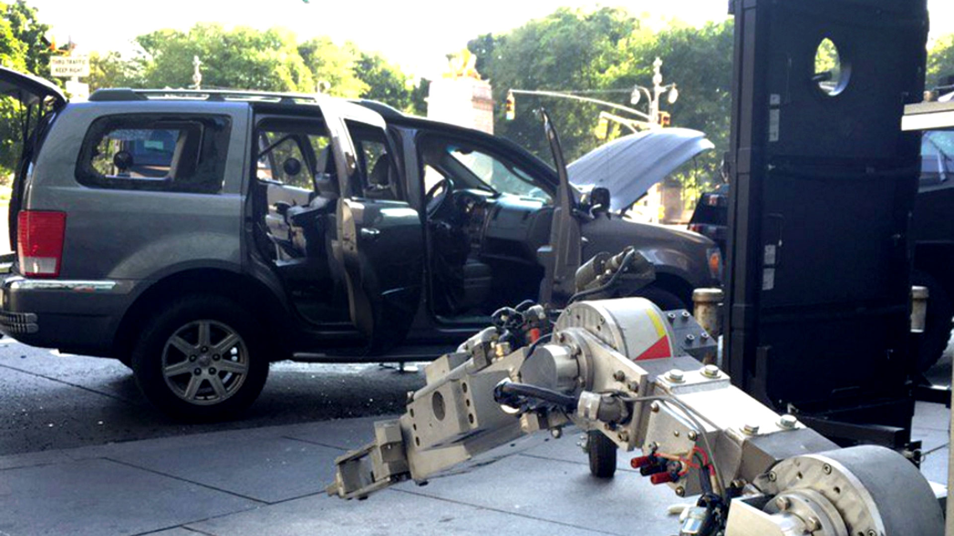 Hours later, the suspect was found inside his 2008 Chrysler Aspen SUV less than 20 blocks north in the Columbus Circle area. James O’Neill, NYPD’s Chief of Department, told reporters when police approached him, the man donned a red plastic helmet and refused to respond to officer’s commands. Meneses told officers he had explosives inside the car, which prompted a full, armored vehicle response from the bomb squad and the Emergency Service Unit. (Video captured by on-scene responders shows the unidentified “bomb.”) After almost six hours of standoff, officers decided to remove Meneses from the vehicle.