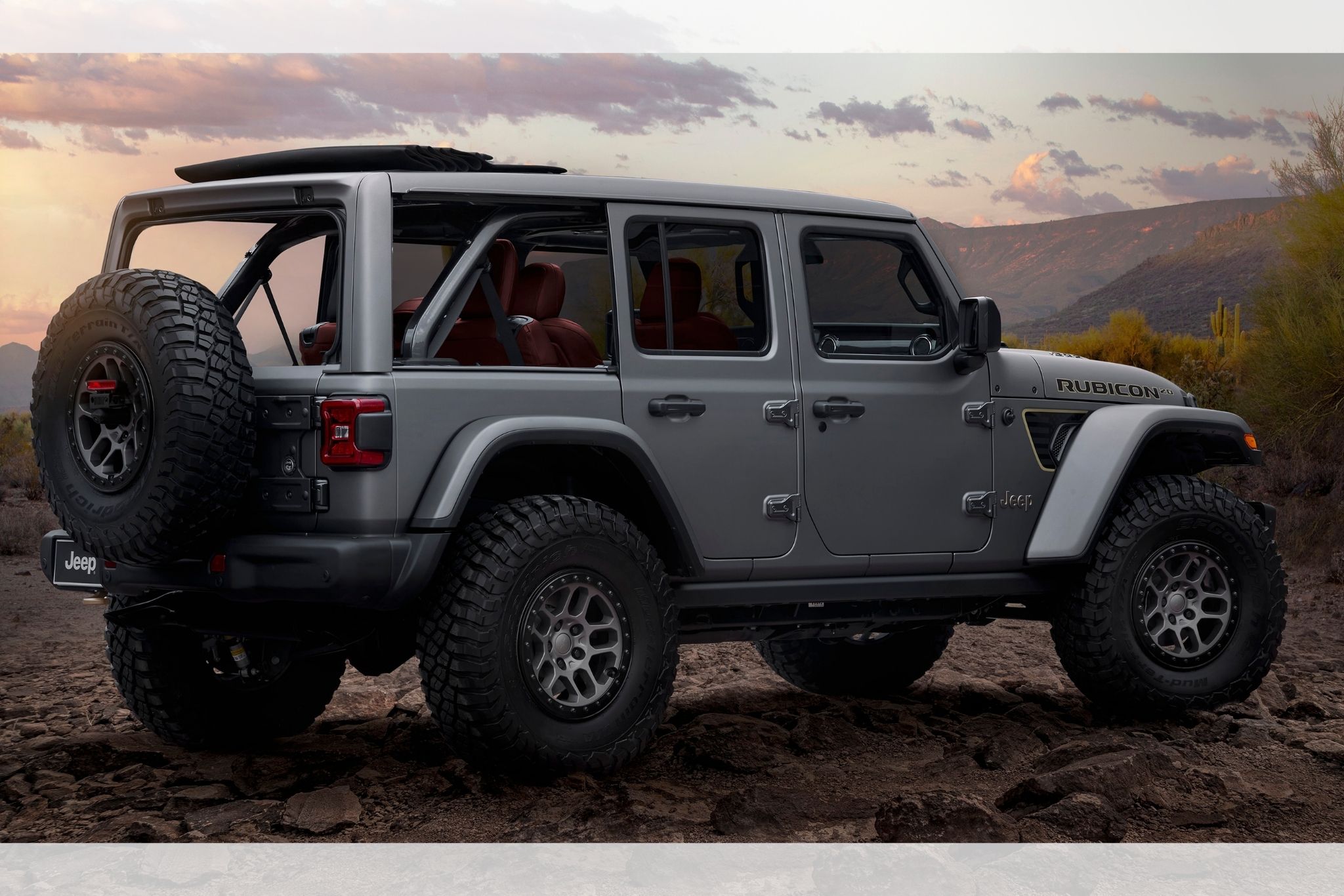 Happy birthday, Wrangler Rubicon. Two decades ago, Jeep launched its Rubicon in the summer of 2002 and it continues to hold its own in the market. Based on the Rubicon 392 with a wonderfully obnoxious (says me) 6.4-liter V8, the four-door 20th Anniversary Concept comes with active dual-mode performance exhaust. The belly of the beast is protected by a steel plate and the whole thing is raised up with a JPP two-inch lift kit. Steel bumpers and a Warn winch bookend the Wrangler, and 17-inch Mopar beadlock-capable wheels with 37-inch mud-terrain tires ride in between.