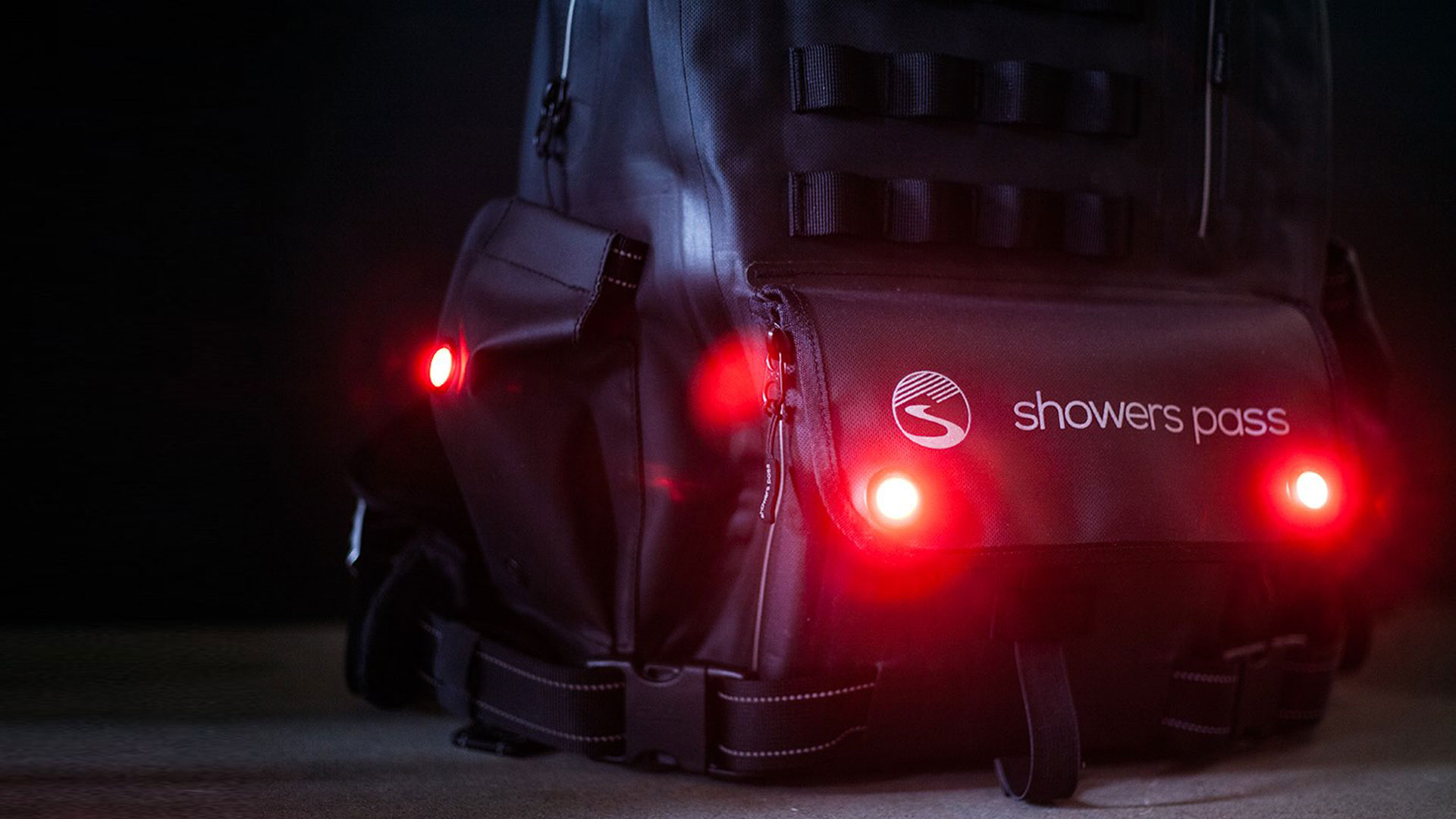 Biking to and from work is a great form of exercise, but it can be dangerous at night. Fortunately, Showers Pass has come out with the Transit Waterproof Backpack with built-in LED lights to keep you well illuminated.