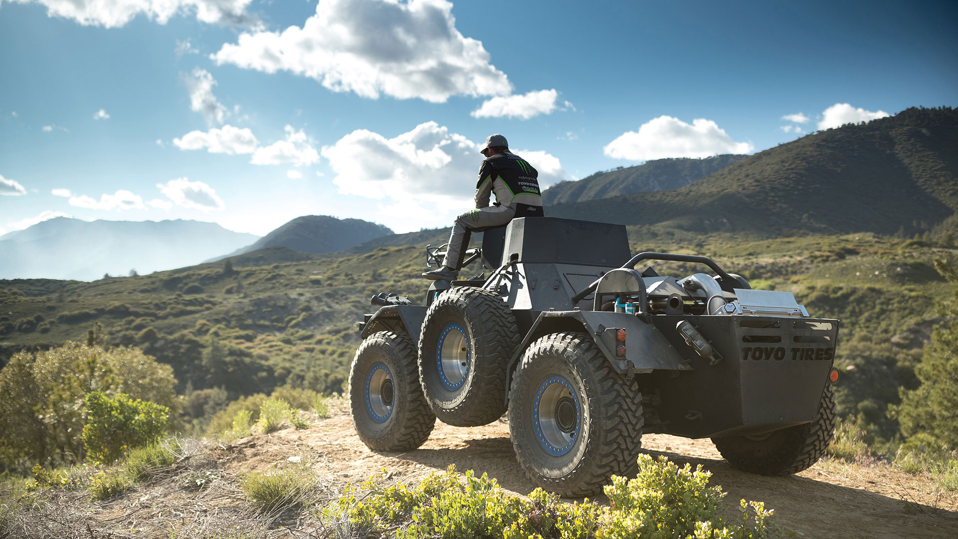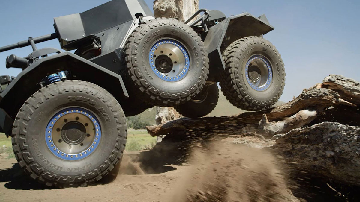 How to sell something pedestrian, say hand lotion? Show the world’s most beautiful humans using the stuff on top of the Swiss Alps in a state of ultimate bliss. Voila: scented glycerin is sexy. With their new video ad campaign, Toyo, a manufacturer of tires, has taken the same route. Instead of showing Toyo tires as they’re most often used—on an 8-year-old Honda Civic in traffic on the way to an office park—Toyo instead build a monstrous, six-wheeled, off-road racing vehicle based on the Ferret, a British military vehicle from the late 1950s. And just like that, rubber, this noble commodity, is hard-charging! And cool!