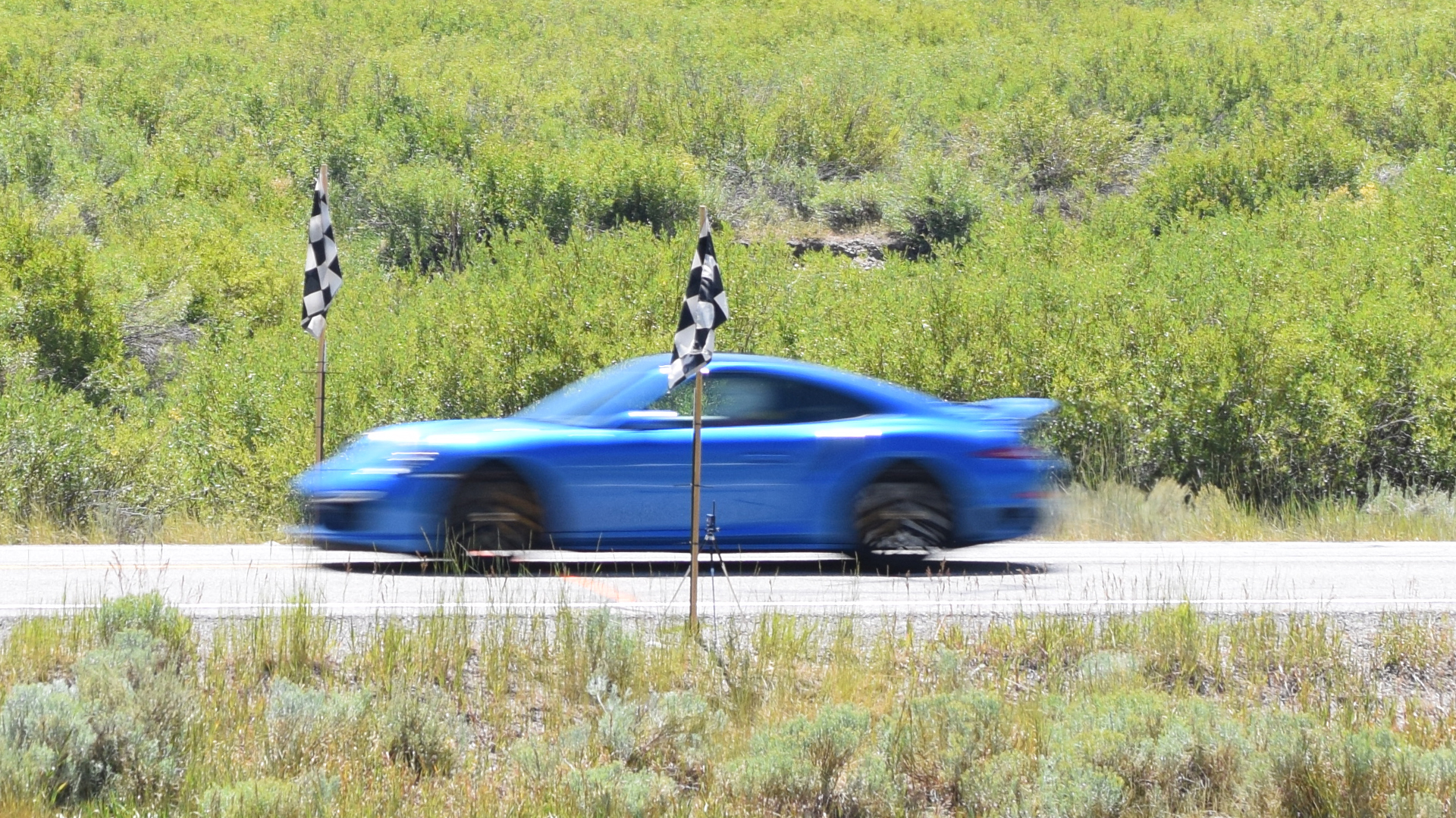 And since we at The Drive are suckers for any chance to see fast cars hauling ass, we were more than happy to book a trip out to Idaho for a chance to see the assembly of Porsches, Ferraris, Corvettes, and even more exotic sheetmetal (hello, Singer Vehicle Design) try and see how high a speed each of them could achieve when given legal carte blanche and a tank full of racing fuel.