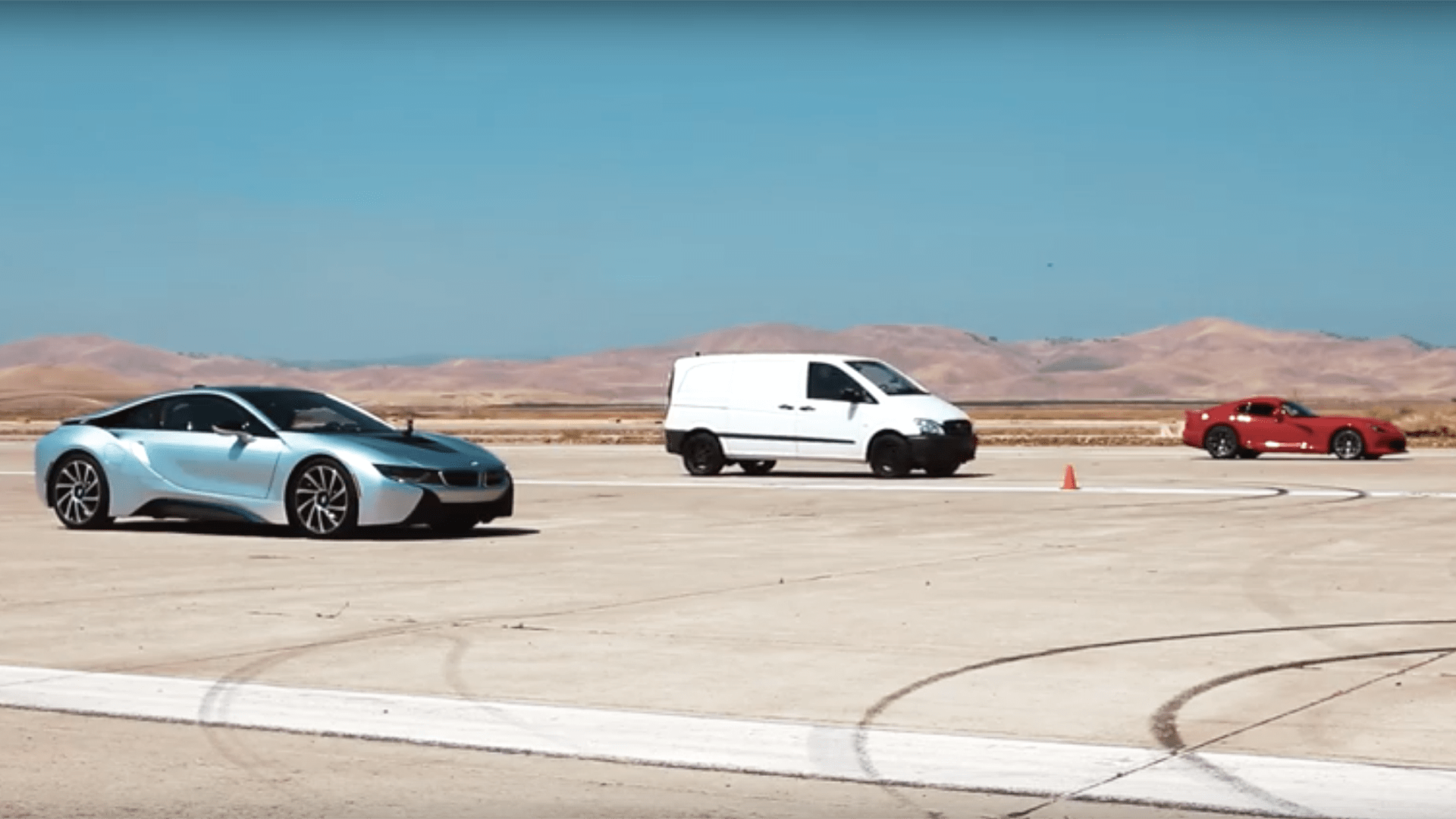 Considering Edna has already knocked off the likes of the Tesla Model S and the Ferrari California T at the drag strip, seeing the electric van vanquish a Viper and eliminate an i8 isn’t shocking. (Rim shot.) But it’s still disconcerting to see an unmarked white van sending the might of Mopar and the bi-powered Bavarian flying into the metaphorical weeds.