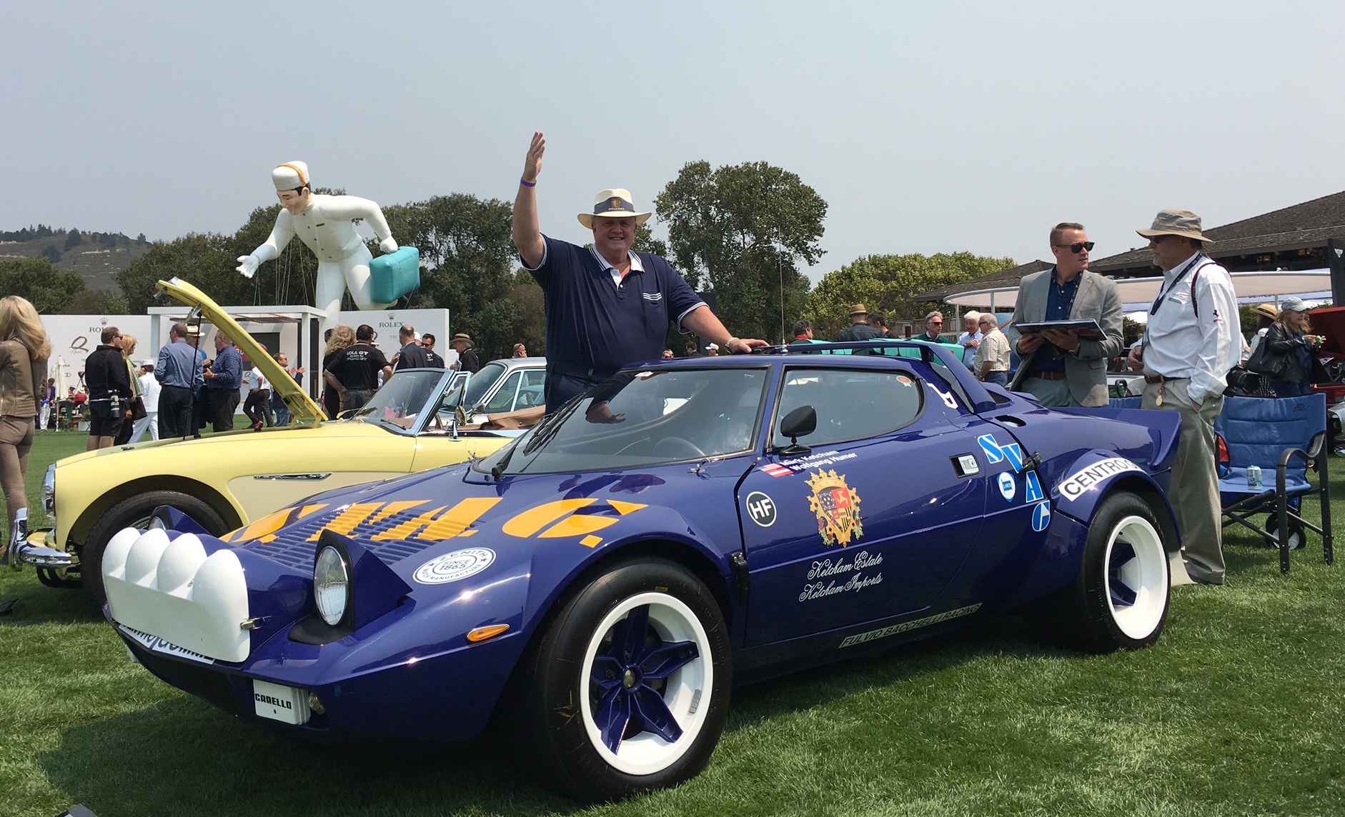 Cohen owns a 1966 Jag E-Type roadster, opalescent gun-metal on the exterior, oatmeal on the interior (both original E-Type paints from the 1960s). Here at the Quail, every exotic car you can imagine is on display, and plenty more that you’ve never imagined: Bugattis, Listers, Lolas, rare Ferraris, Lamborghinis by the dozen. The E-Types—the only carin the permanent collection of the Museum of Modern Art—have turned out in force. Cohen bought his just 18 months ago. “It went through a complete nut and bolt restoration,” he says, “65,000 pieces taken apart and put back together. I think you can see they did a great job.” Uh, yeah.