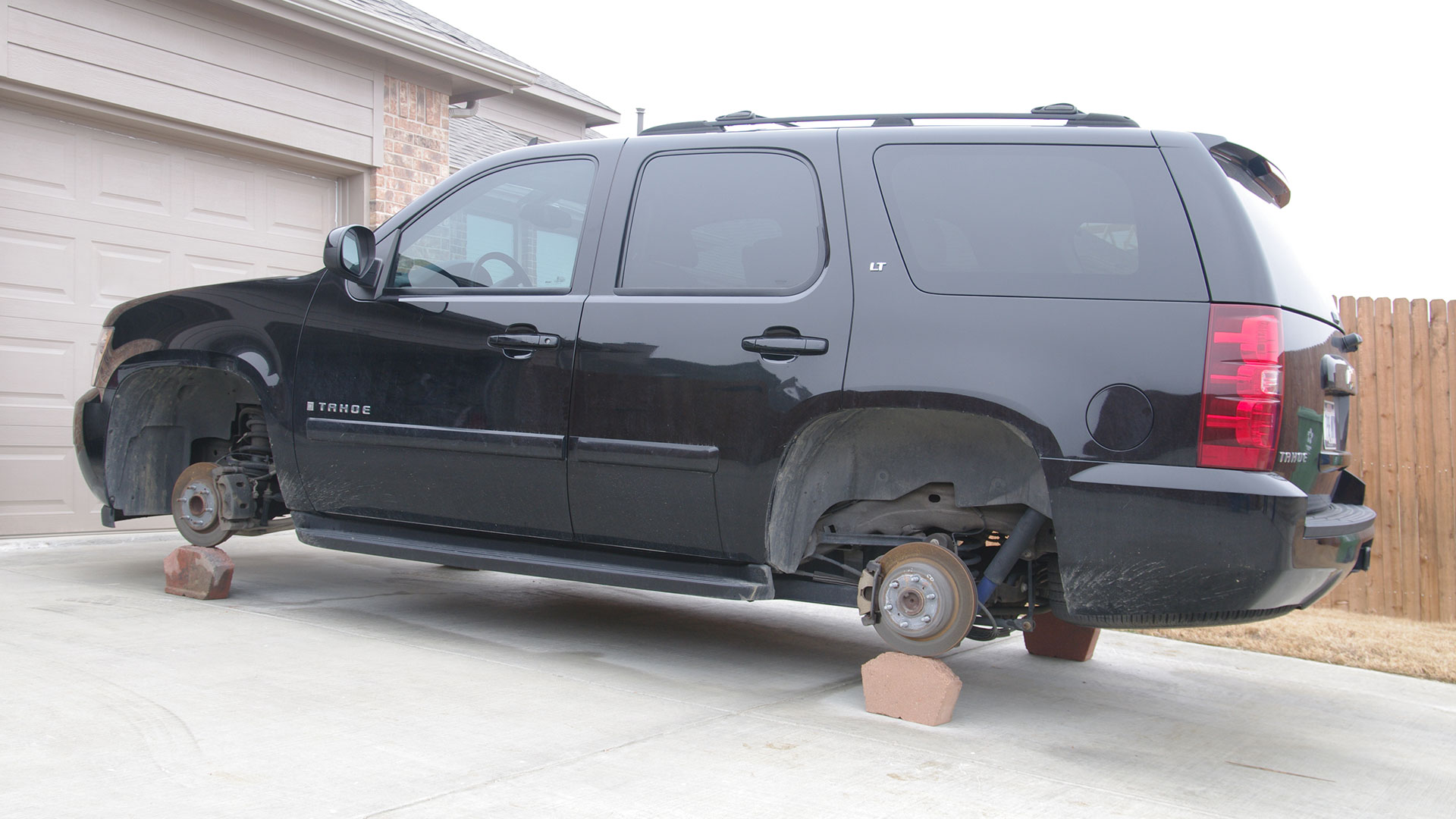 This past weekend, thieves broke into a car dealership in Texas and proceeded to steal the wheels and tires off 48 separate cars and trucks, leaving the vehicles on cinder blocks—and making off with roughly $250,000 in pilfered rubber and rims, according to local law enforcement.