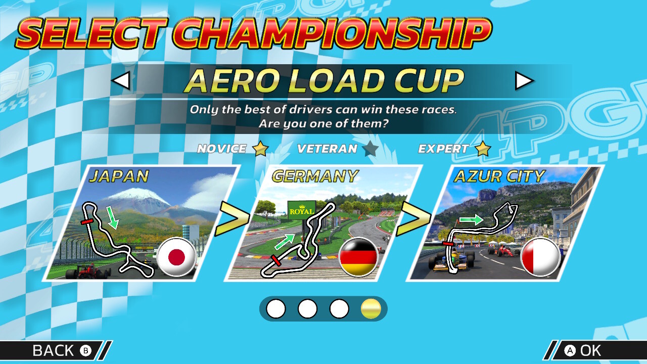 Adorable de-makes of tracks notwithstanding, 4PGP is straightforward arcade racing fare. You’ve got four championships of three races apiece, which must be won at three difficulty levels to earn all the locked cars and tracks the game has to offer. The physics are generally very grippy, not unlike Virtua Racing’s initially, though the rear tires don’t step out beyond the limit as they do in Sega’s classic. There’s no drift mechanic or real sense of weight transfer here, and most corners are best taken with maybe a light lift of the throttle. The brake is kind of your enemy in 4PGP.