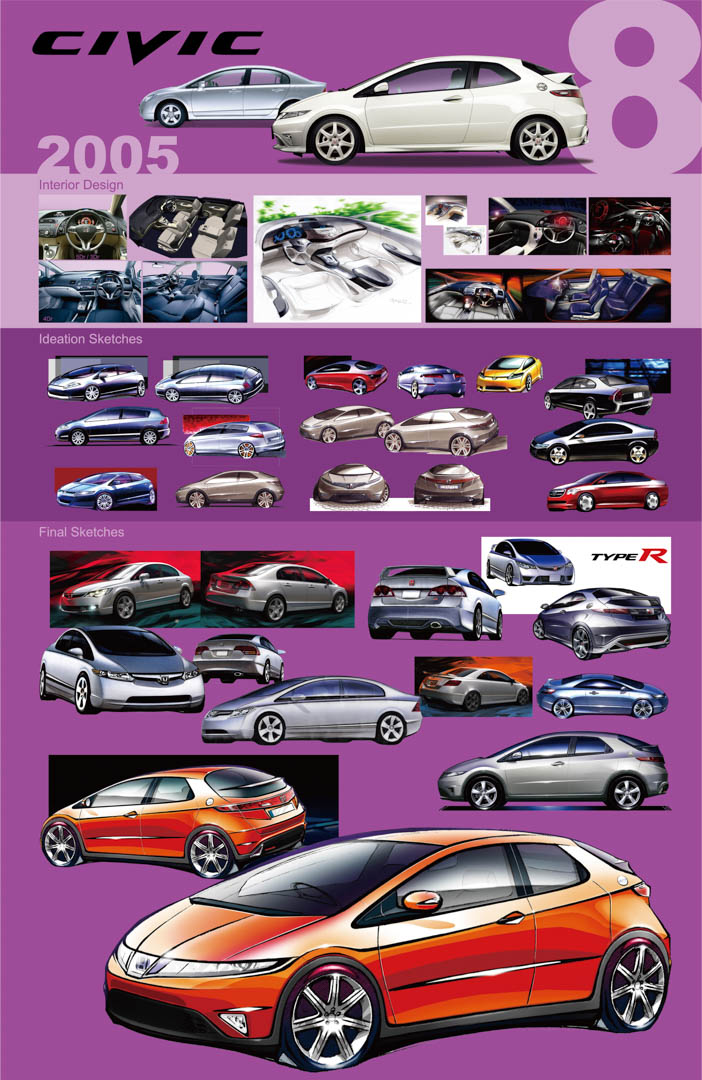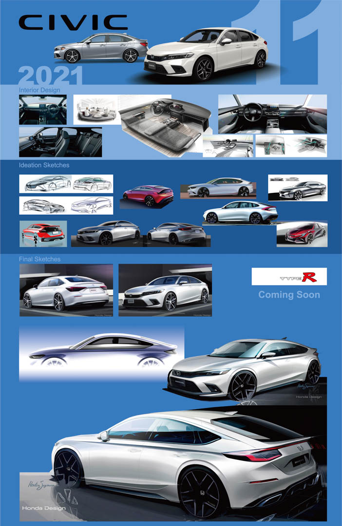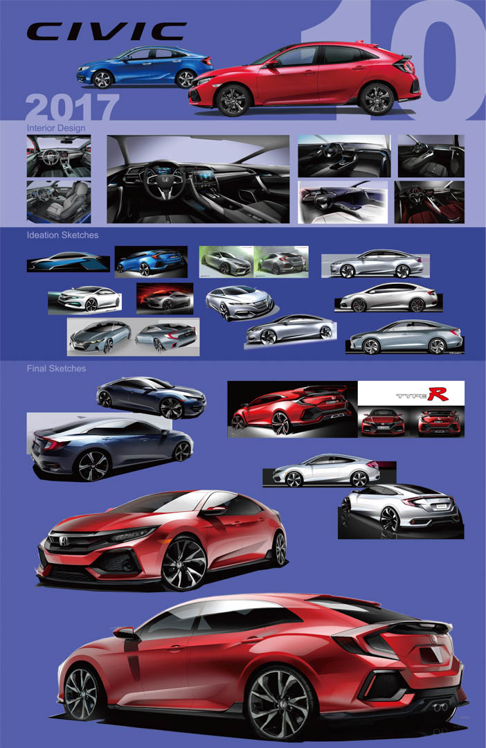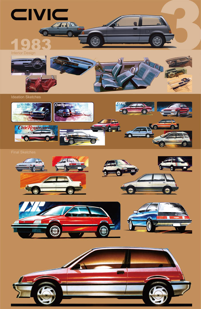 These sketch panels offer a look into the history of such an iconic car and how its design has evolved over five decades. The first-gen Civic might be the best-looking Civic of all, and looking at its sketches, I even see a little bit of Giugiaro’s Mk1 Volkswagen Golf. Ironic, as both were designed around the same time on different sides of the world.
