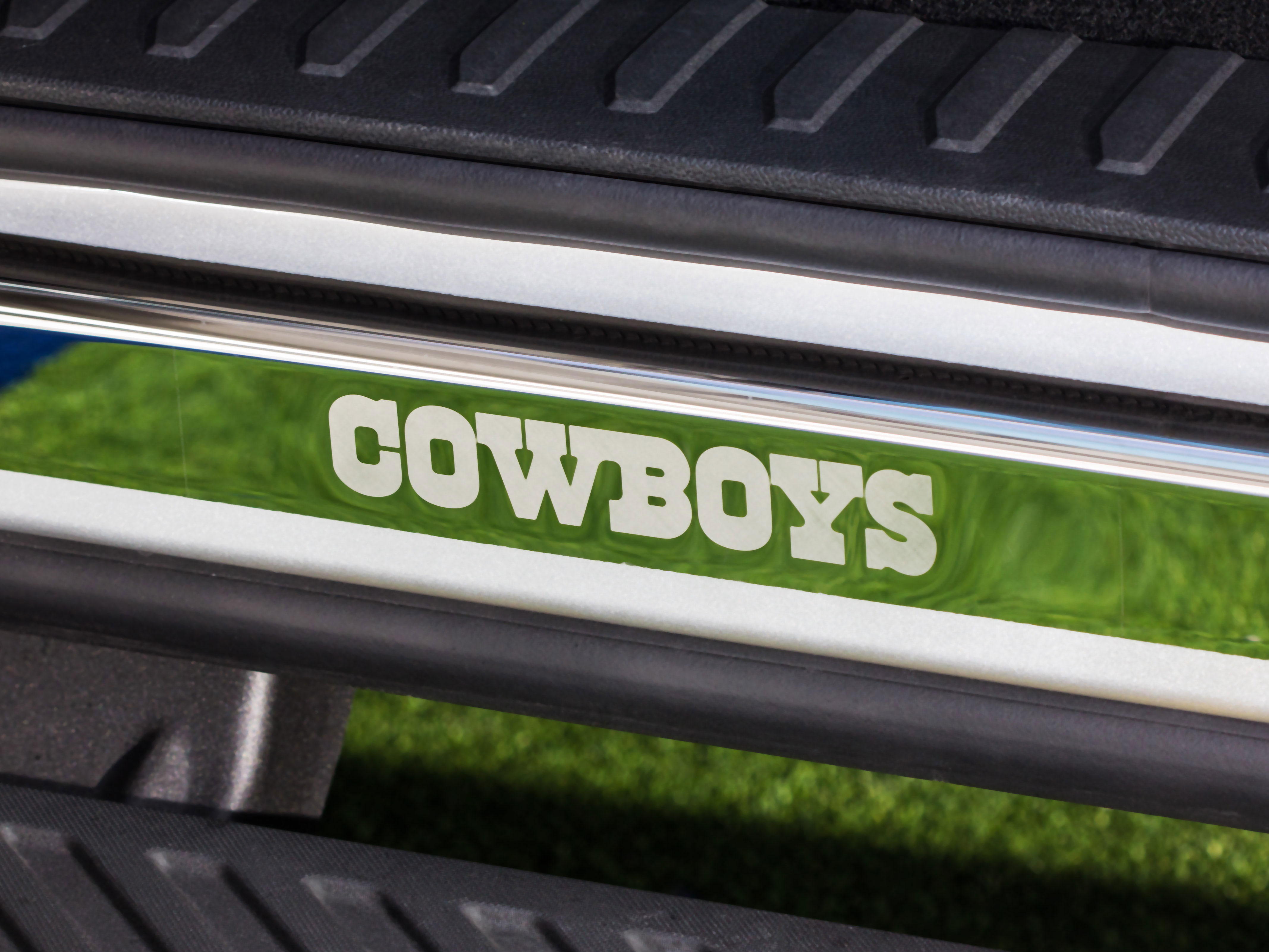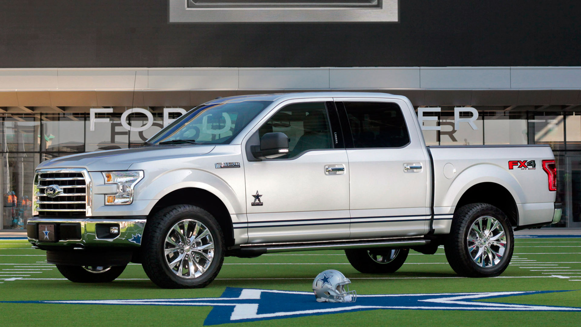 Just 400 examples of the Dallas Cowboys F-150 will be cranked out, and they’ll only be sold at a vetted group of Texas Ford dealerships—presumably, the ones with the most blue-and-silver inflatable arm-waving tube men out front. Each will be based on on the F-150 XLT with Chrome Package, and come painted in the same shade of silver as the helmet Tony Romo has sitting beside his hospital bed. In addition to the shiny paint job and the aforementioned Cowboys badges (which live on the doors and tailgate), the special edition truck comes with additional Cowboys stars on the bed mat and 20-inch wheels, a blue-and-white stripe on the rocker panel, and an interior plaque signed by team owner Jerry Jones. And, of course, bespoke floormats.