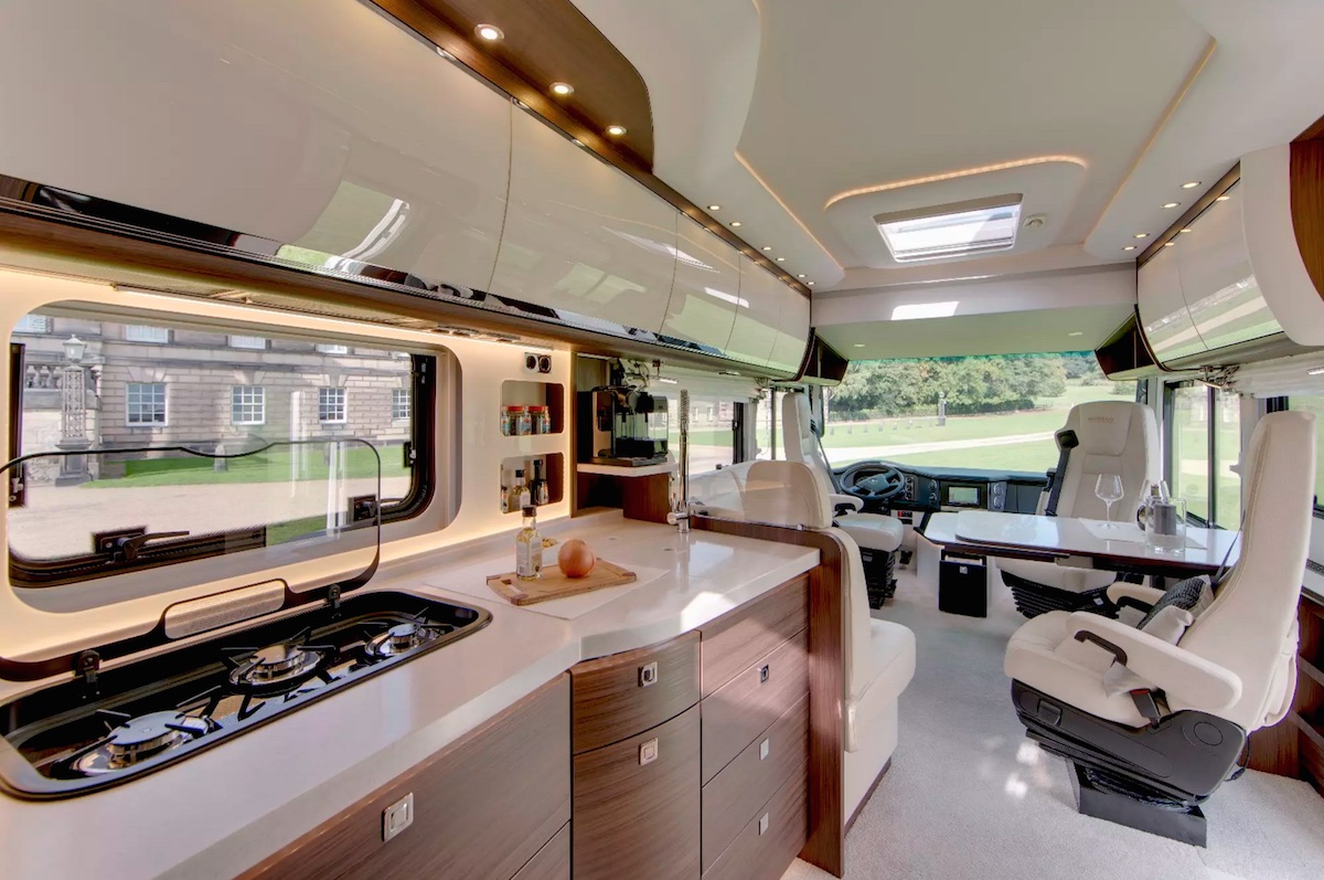 The German-made Morelo Empire Liner motorhome is a luxury apartment on wheels, nicer than most stationary dwellings. Though, for half a million dollars, it should be. Among the included fineries: underfloor heating, a rain shower, a suspended bed with a multi-zone mattress with a “water gel” topping, stainless steel kitchen appliances, soft touch walls and ceiling, a host of skylights, and a garage for your (compact) car. Because towing your extra wheels is for chumps and the poors, right?
