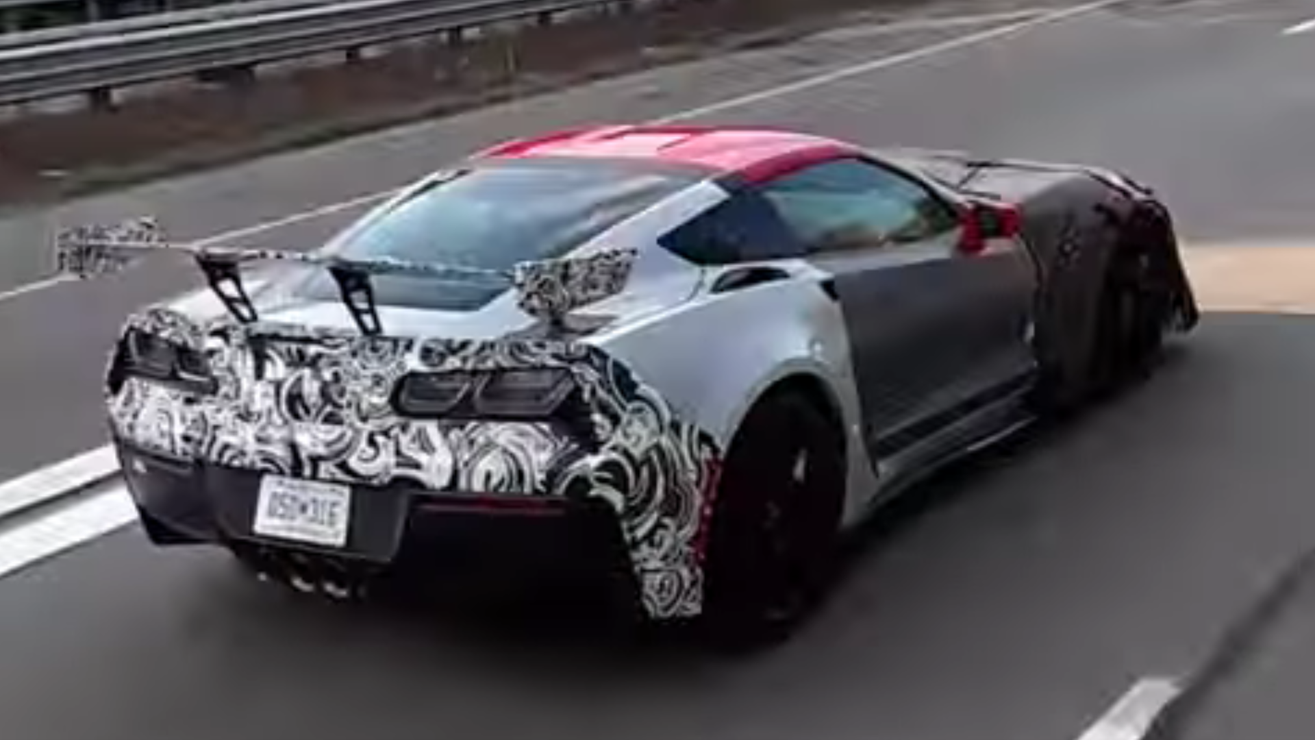 It’s a cliche, but it’s also true: nothing says “fast car” quite like a ginormous spoiler mounted out back. And judging from this video of what appears to be the upcoming Chevy Corvette ZR1, the car appears to have a wing that’s even bigger than that of its race car counterpart, the C7R.