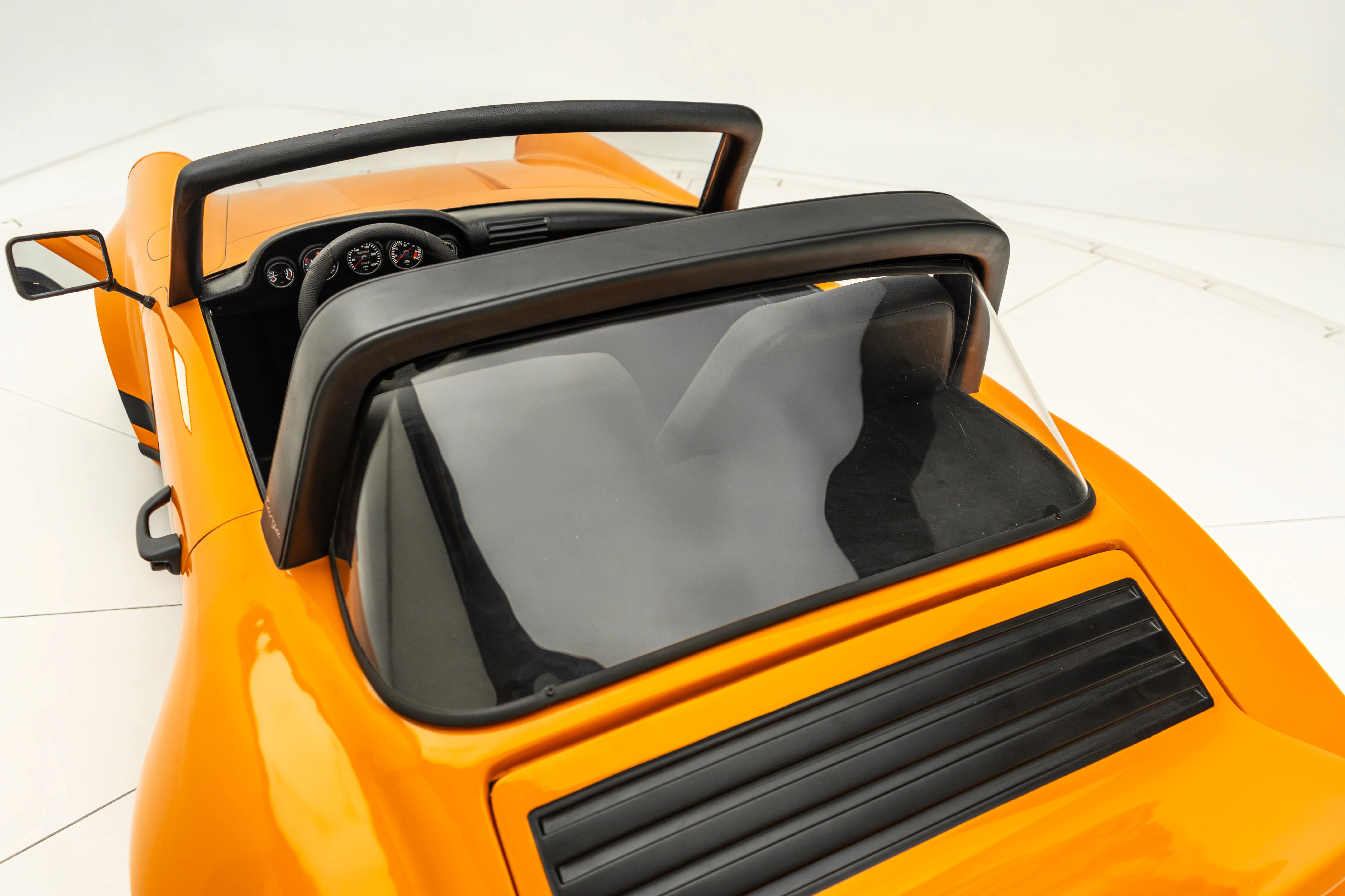 The Targa-style 911 was built by Little Roadsters, a Florida-based outfit that touts itself as having perfected the 2/3-scale replicas of classic Porsche roadsters. Not gonna lie, this Targa build fits the boast. It’s adorable! The color also kind of matches The Drive‘s logo; too bad we don’t have a central office to hang this thing on the wall of.