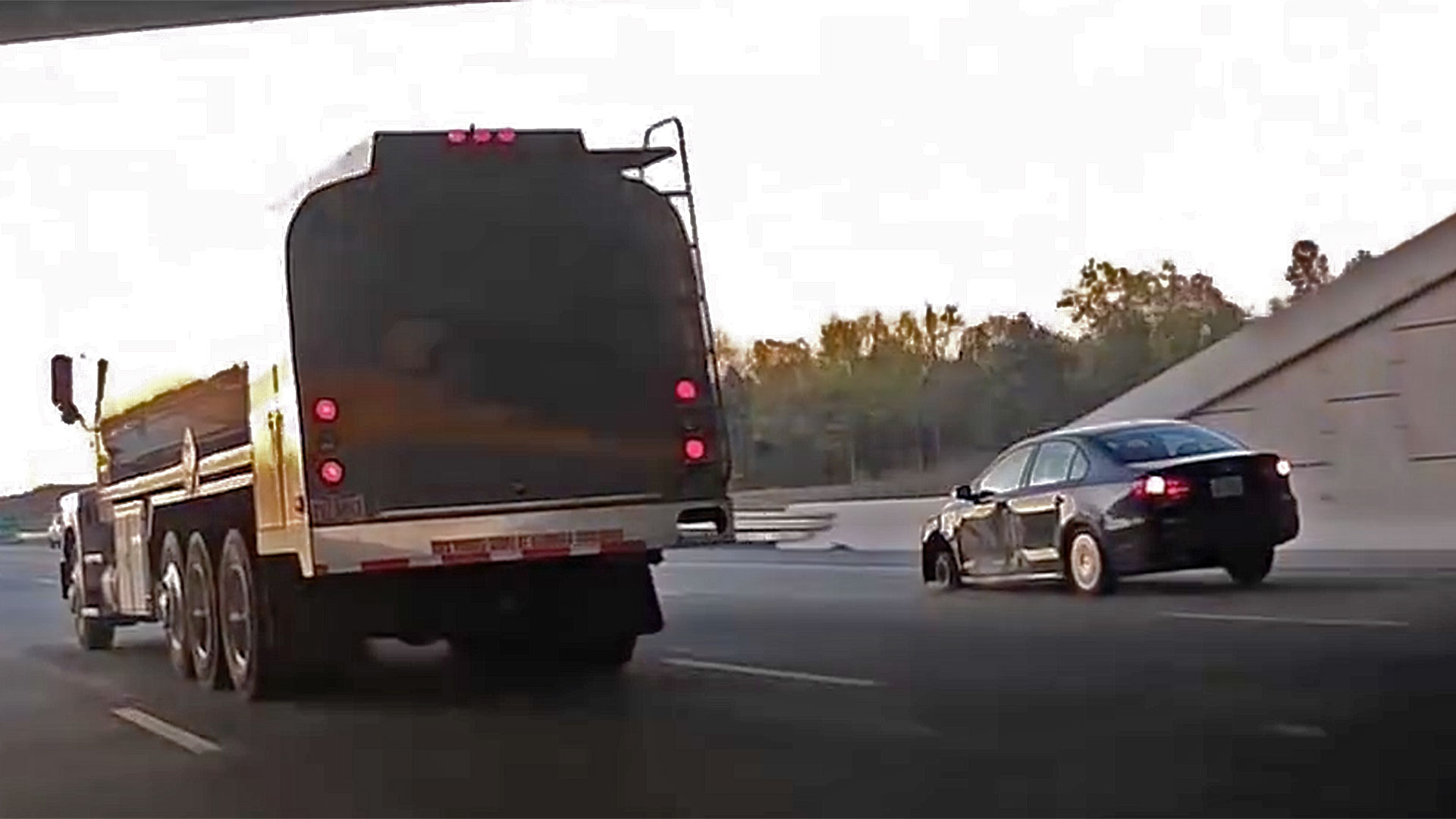 Then, towards the end of the clip, the driver—who the narrator describes as a “she,” so we’re going to assume is a woman—manages to rise to an even higher level of on-road idiocy, blazing out of an exit lane and back onto the highway at almost the last possible second, prompting a startled remark from the filmographer—and likely quite a few other nearby road users.