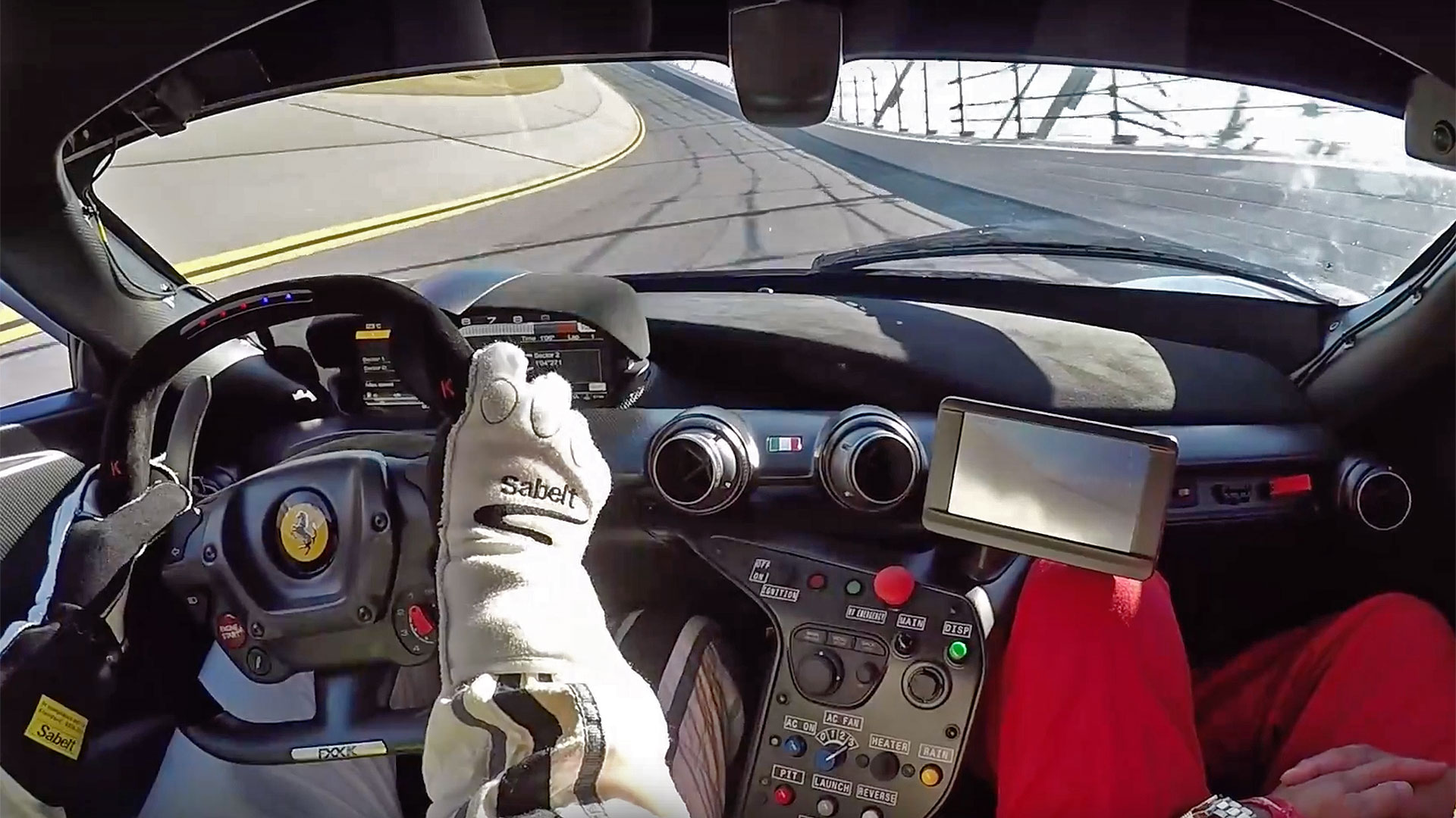 But as YouTube user Speedracer38 discovered when he went for a ride in the FXX K, those folks lucky enough to snag one of these hybrid hypercars wind up with a machine that can make even Daytona International Speedway seem small.