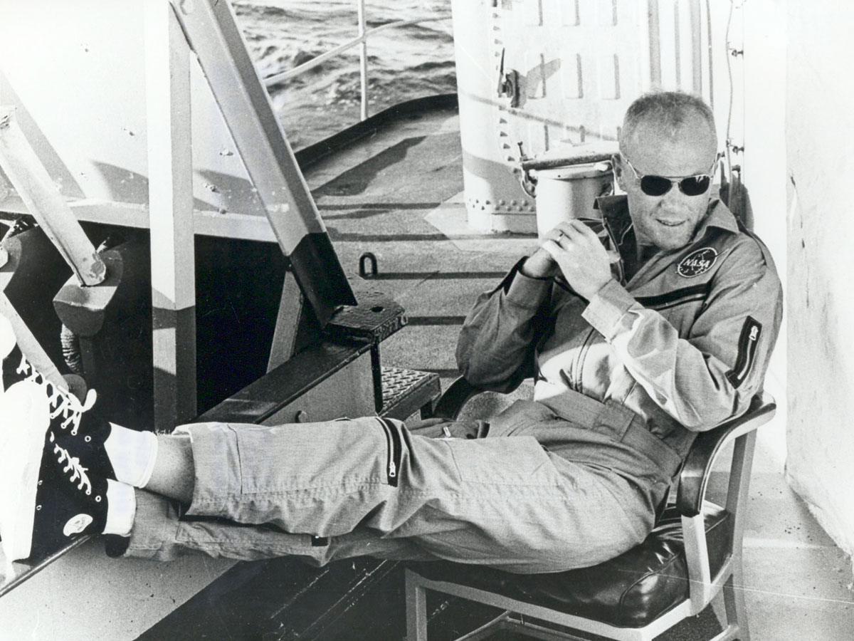 Astronaut John H. Glenn, Jr., in his Mercury flight suit., NASAJohn H. Glenn, Jr. – NASA Project Mercury Astronaut. In April of 1959, John Glenn was selected as a member of the first group of astronauts, the “Mercury Seven.” He was joined by Scott Carpenter, Gordon Cooper, Gus Grissom, Wally Schirra, Alan Shepard and Deke Slayton., NASAMercury astronauts John H. Glenn Jr., Virgil I. Grissom and Alan B. Shepard Jr. standing by the Redstone rocket in their spacesuits., NASAJohn Glenn and Scott Carpenter go over the flight plan for the Mercury-Atlas 7 mission at Cape Canaveral, Florida in May 1962., NASAAstronaut John Glenn inspects artwork that will be painted on the outside of his Mercury spacecraft, which he nicknamed Friendship 7. On Feb. 20, 1962, Glenn lifted off into space aboard his Mercury Atlas (MA-6) rocket to become the first American to orbit the Earth. After orbiting the Earth 3 times, Friendship 7 landed in the Atlantic Ocean, just East of Grand Turk Island in the Bahamas. Glenn and his capsule were recovered by the Navy Destroyer Noa, 21 minutes after splashdown., NASAJuly 18, 2011, is John Glenn's 90th birthday. On Feb. 20, 1962 at 9:47 am EST, Glenn launched from Cape Canaveral's Launch Complex 14 to become the first American to orbit the Earth. In this image, Glenn enters his Friendship 7 capsule with assistance from technicians to begin his historic flight., NASAAstronaut John H. Glenn Jr., pilot of the Mercury Atlas 6 (MA-6) spaceflight, poses for a photo with the Mercury “Friendship 7” spacecraft during preflight activities., NASAAstronaut John H. Glenn, Jr., pilot of the Mercury-Atlas 6 (MA-6) space flight, enters the Mercury “Friendship 7” spacecraft during the MA-6 pre-launch preparations at Cape Canaveral, Florida., NASAAstronaut John H. Glenn, Jr., undergoes a simulated orbital flight as part of his training for Project Mercury in the Manned Spacecraft Center's procedure trainer at Langley Air Force Base, Virginia, Nov. 29, 1961., NASADr. von Braun briefs Astronaut John Glenn in the control room of the Vehicle Test Section, Quality Assurance Division, Marshall Space Flight Center in Huntsville, Ala. With the Feb. 20, 1962 launch of the MA-6 spacecraft, Friendship 7, atop an Atlas vehicle, Glenn became the first American to orbit the Earth., NASAThe original Mercury astronauts are pictured around a table admiring an Atlas model. Standing, left to right, are Alan B. Shepard Jr., Walter M. Schirra Jr., and John H. Glenn Jr.; sitting, left to right are Virgil I. Grissom, M. Scott Carpenter, Donald Slayton, and L. Gordon Cooper Jr. Photo by Bill Taub., NASAOn April 9, 1959, NASA's first administrator, Dr. Keith Glennan, announced the names of the agency's first group of astronauts at a news conference in Washington, D.C., NASAIn February 1962, Astronaut John H. Glenn Jr. looks into a globe, technically the “Celestial Training Device” at the Aeromedical Laboratory at Cape Canaveral, Florida., NASAAstronaut John H. Glenn in the cockpit of a T-106 preparing for training exercises in flight proficiency., NASAGuenter Wendt, the original pad leader for NASA's manned space program, coaxes a smile out of astronaut John Glenn after the MA-6 mission was scrubbed., NASAJohn Glenn's Friendship 7 spacecraft launches on a Mercury-Atlas rocket on Feb. 20, 1962., NASAA camera onboard the “Friendship 7” Mercury spacecraft photographs astronaut John H. Glenn Jr. during his historic flight on February 20, 1962., NASAOn Feb. 20, 1962, John H. Glenn, Jr., became the first American to orbit Earth., NASAPresident John F. Kennedy, astronaut John Glenn and General Leighton I. Davis ride together during a parade in Cocoa Beach, Fla., after Glenn's historic first U.S. orbital spaceflight., NASAAstronaut John H. Glenn sits in a car in front of the east side of the Mercury Mission Control building. Glenn was the pilot for the Mercury-Atlas 6 mission aboard Friendship 7, which launched Feb. 20, 1962., NASAThe crew of space shuttle Discovery mission STS-95, including John Glenn. On this flight, Glenn became the oldest person to fly in space. The nine-day mission supported a variety of research payloads, including experiments designed to investigate similarities between aging and the side effects of space flight., NASAOn February 20, 2013, we remember the 51st anniversary of the flight of Friendship 7, which vaulted NASA astronaut John Glenn into space to orbit the Earth for the first time in history. Last March, Glenn spoke to a Cleveland audience during the 50th anniversary celebration., NASAJohn Glenn receives the Presidential Medal of Freedom., NASAAstronaut John Glenn relaxes aboard the USS Noa after being recovered from the Atlantic near Grand Turk Island after his historic Mercury flight. Glenn became the first American to orbit the Earth on February, 20, 1962 in his “Friendship 7” capsule. The Noa picked him up 21 minutes after impact., NASA