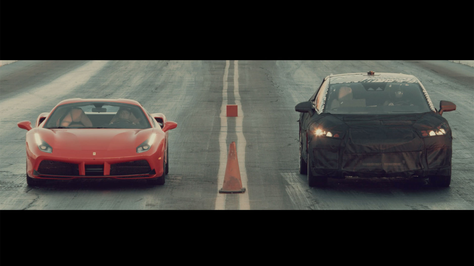 See, while the clip clearly depicts a heavily camouflaged Faraday Future electric crossover/wagon/obloid people mover squaring off against a Tesla Model X P90D, a Bentley Bentayga, and a Ferrari 488 Spider, it doesn’t actually show, y’know, the races. There are plenty of dramatic shots of the cars squaring off at the starting line, a couple quick moments of them taking off, and then…a black screen telling the viewers to “Stay Connected.”