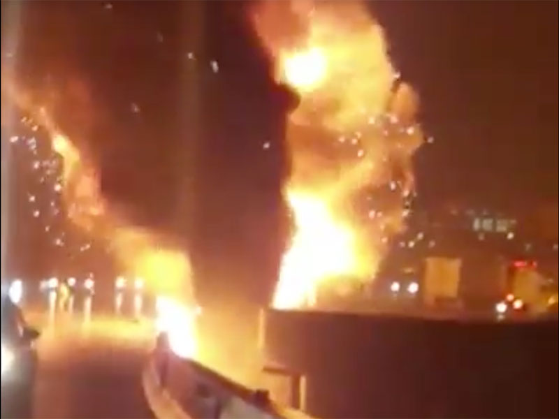 The crash occurred around 5:30 a.m. Saturday. As the cars piled into one another, a tanker truck struck a barrier on an overpass, flipped off the highway, and landed on railroad tracks below, causing a fiery explosion, The Baltimore Sun reported. The bystander’s video, shared to Facebook Saturday morning, managed to capture the moment of the explosion from an almost-too-close viewpoint.