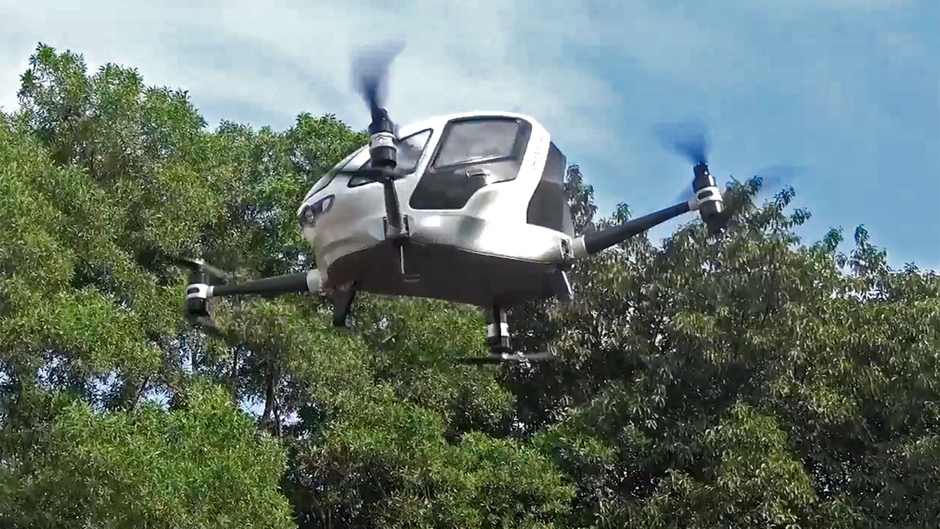 The future is closer than you think. Almost a year after revealing its vertical-takeoff-and-landing (VTOL) aircraft at the 2016 Consumer Electronics Show, Chinese company EHang has released video of its autonomous flying taxi conducting a test flight.