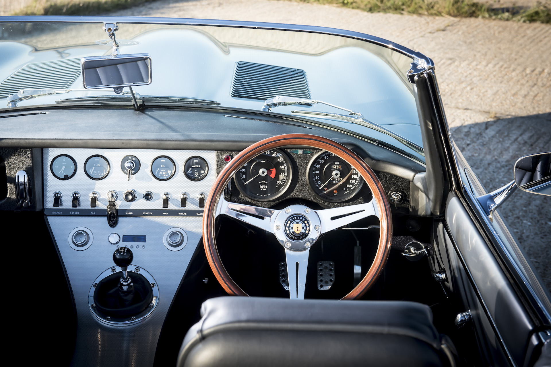 Eagle’s focus is on maintaining lightness—the car tips that scales at roughly 2,200 pounds—but the interior isn’t offensively spartan. With its period-correct Smiths instruments, wooden steering wheel, and modern-looking center console, it looks like a lovely place to be—not to mention, its knock-off wire wheels are similarly charming.