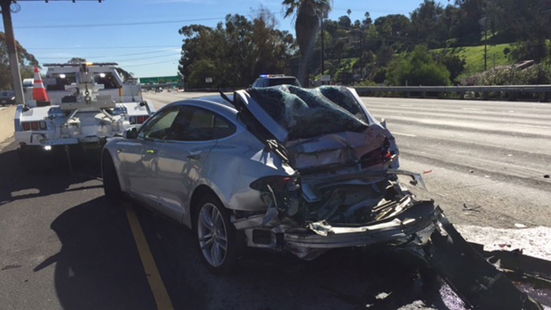 Typically when a tractor trailer rear-ends a passenger vehicle, the truck has the advantage. However, the Model S has a curb weight of 4,647 pounds, and that mass helps it stand up to a 10-ton truck. Being a quarter of the weight of a semi is still a disadvantage, but the 1,200-lb. flat battery pack strapped to the frame helps even the playing field a bit by reinforcing the structural integrity of the vehicle.