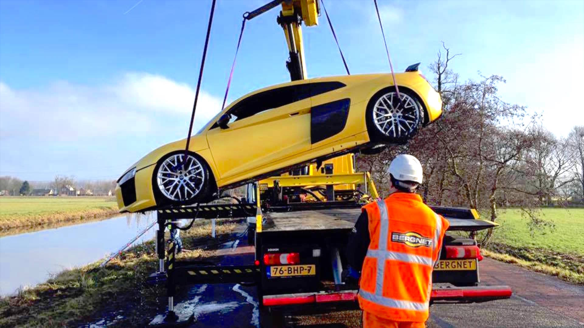 A German man had a less than pleasant Sunday, when he drove his new Audi R8 V10 Plus into a river in the Netherlands.