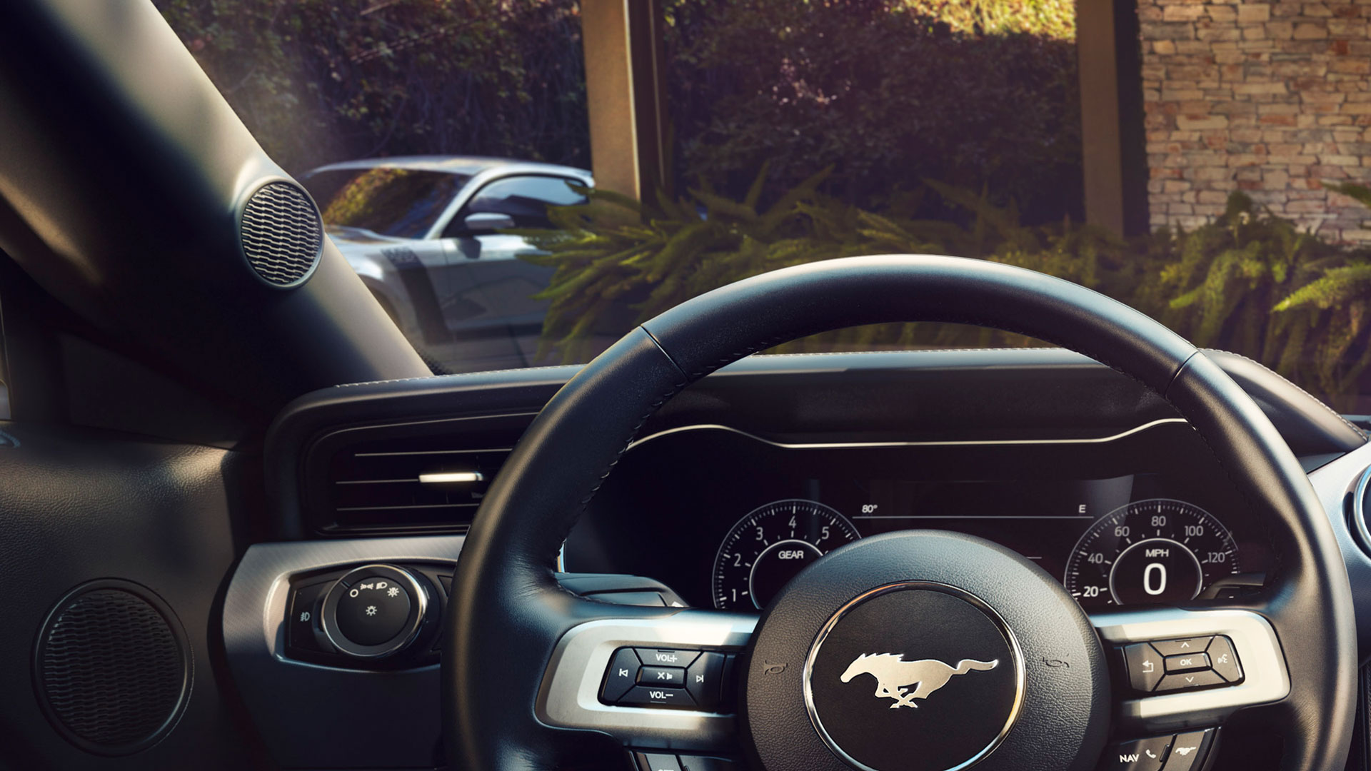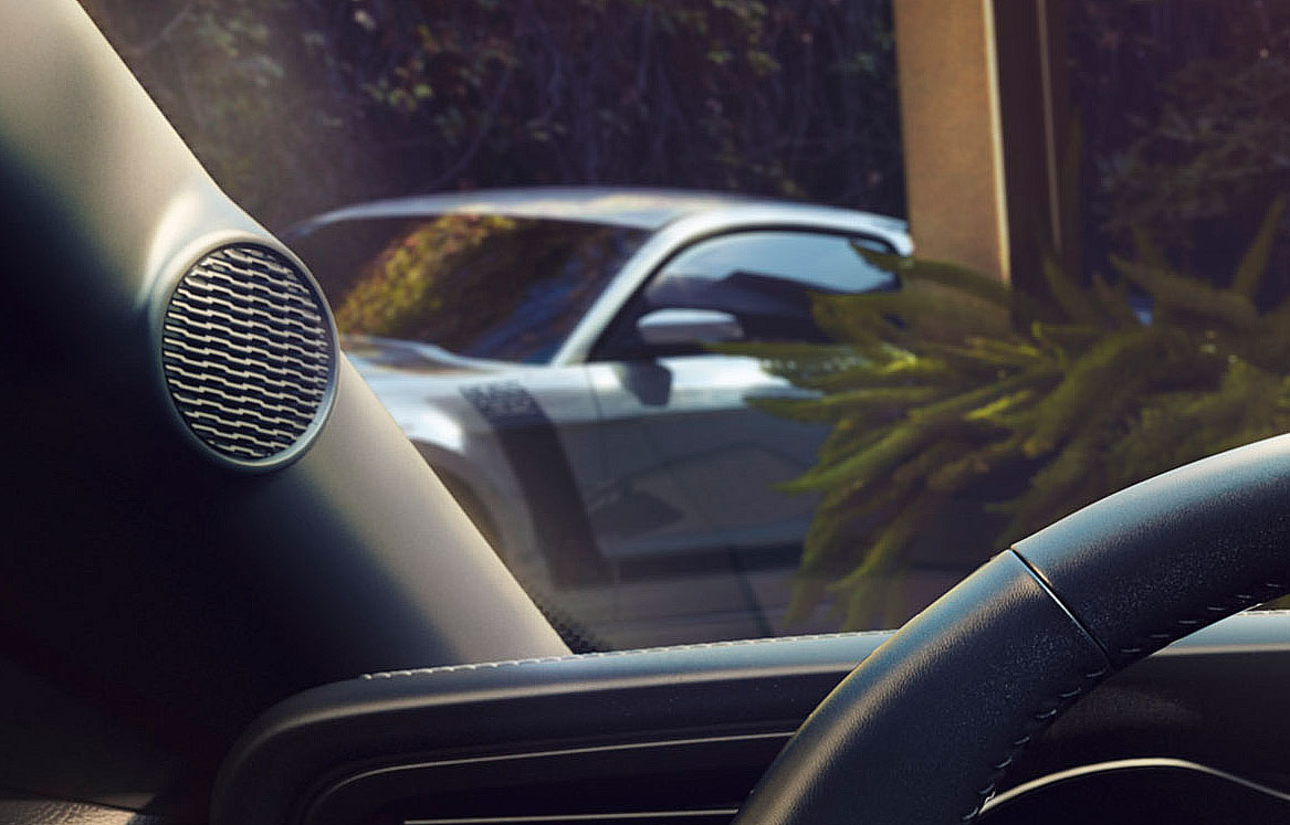 Rather than leaving the environment void of Ford products in a picture of the new ‘Stang’s interior, artists decided to include a small image of what looks like a Boss 302 hidden in the background.