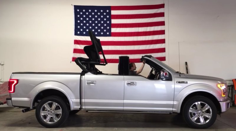 The truck’s unique soft top is power retractable, helping you cruise down the Hollywood equivalent of America’s flyover states with plush style and convenience. It really doesn’t even take up that much bed space, proving its somewhat versatile nature.