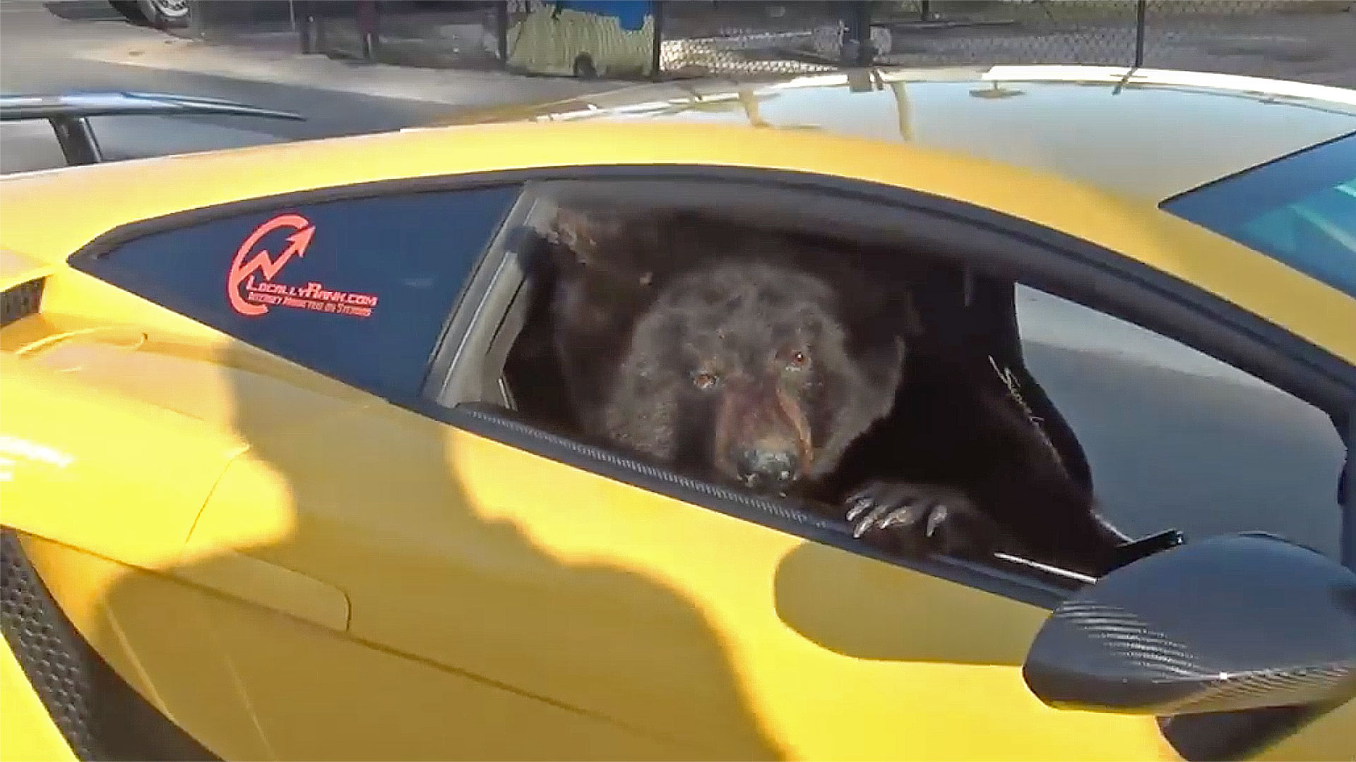 There are some sights you can never forget. A bear riding shotgun in a bright yellow Lamborghini is one of those things.