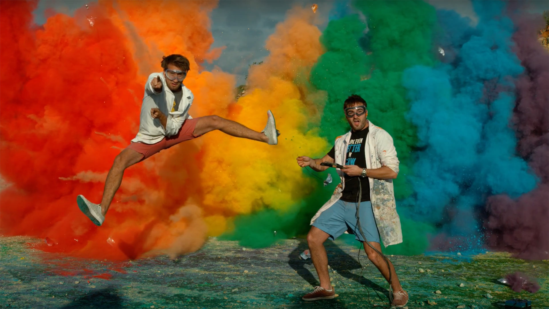 Airbags are awesome, watching stuff in slow motion is awesome, watching airbags explode in slow motion with colored powder is amazing. Recently The Slow Mo Guys made a video of 25 airbags exploding at the same time with all the colors of the rainbow piled on top of the airbags. Using remote detonation, the airbags exploded at simultaneously in a beautiful rainbow.