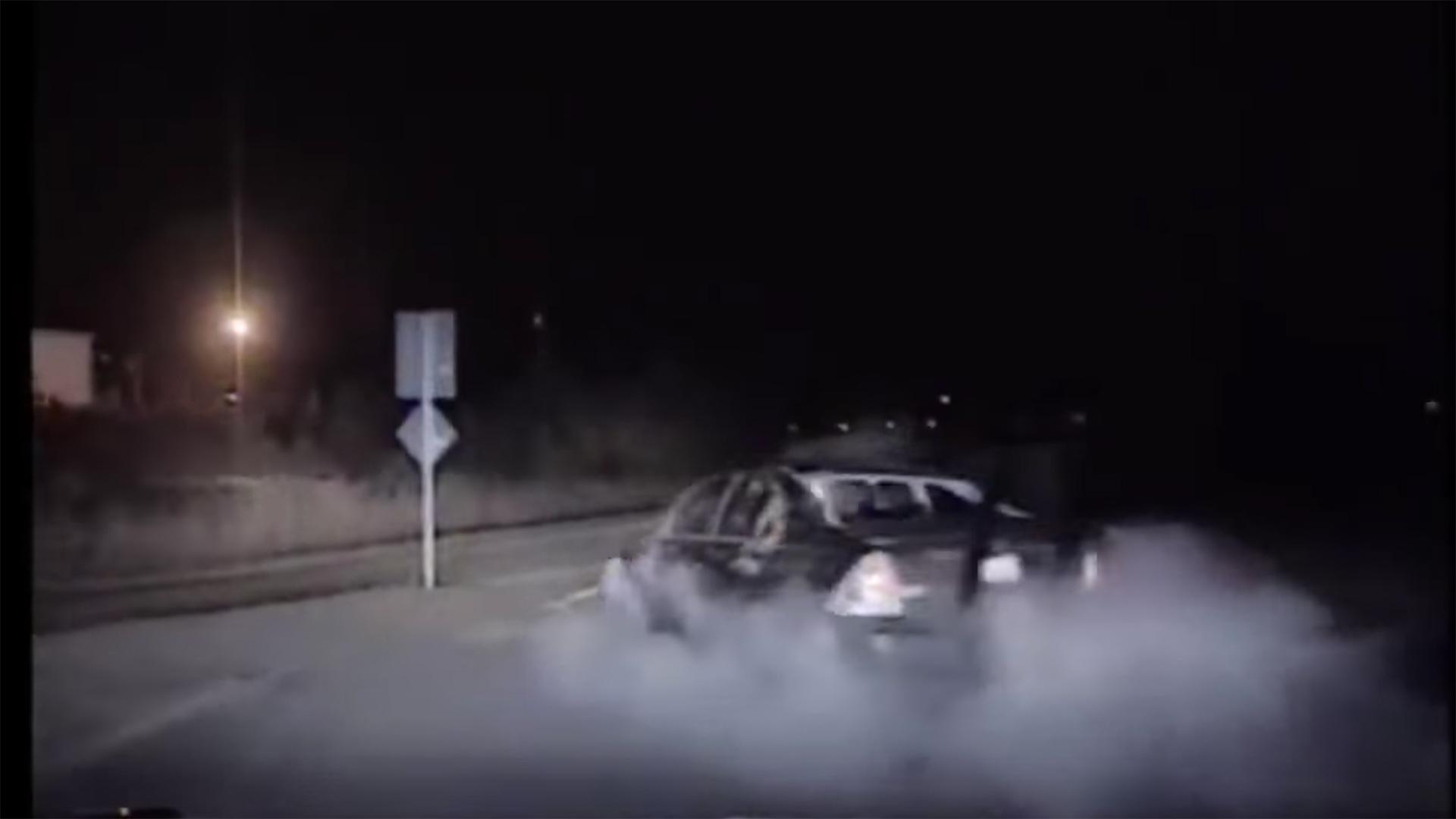 From the audio recording, it sounds like they had to break the window to get access to Shoulders who was blaring music at the time of the arrest. The only reason we mention the music is because it’s impressive that the audio system was still working. Well done, Ford.