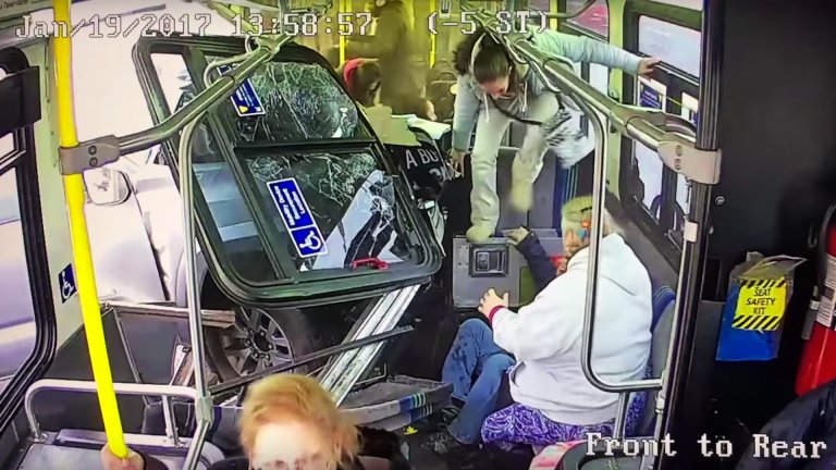 To no one’s surprise, the car loses control and eventually slams into the guardrail. Rather than doing the smart thing and getting out of harm’s way, the driver exits his vehicle and casually inspects the damage. Within seconds a bus comes barreling towards the disabled vehicle and smashes into it. The car flies forward, and the driver escapes certain death by the thinnest of margins. The driver isn’t fully to blame for the second accident, since the bus should have given ample room and slowed down before approaching the disabled sedan. But that’s not to say he’s blameless—inspecting the damage to your vehicle in the middle of a highway in dangerous conditions is grade-A stupid.