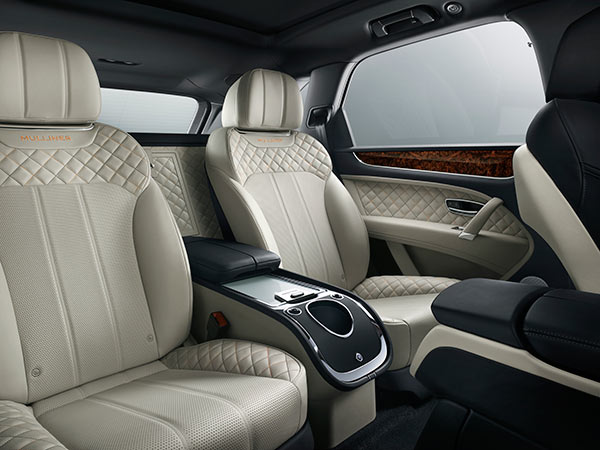 The interior of the Bentayga Mulliner will also carry over the two-tone theme for the leather seating—the front seats will be black leather while the rear seats will be ivory. In order to add more contrast to the interior, Bentley has opted to go with two different colors for contrasting quilted stitching. Although it may seem abrupt to go from black front seats to ivory, Bentley has done a nice job of slowly blending the two together as you travel from the front seats to the rear seating area.