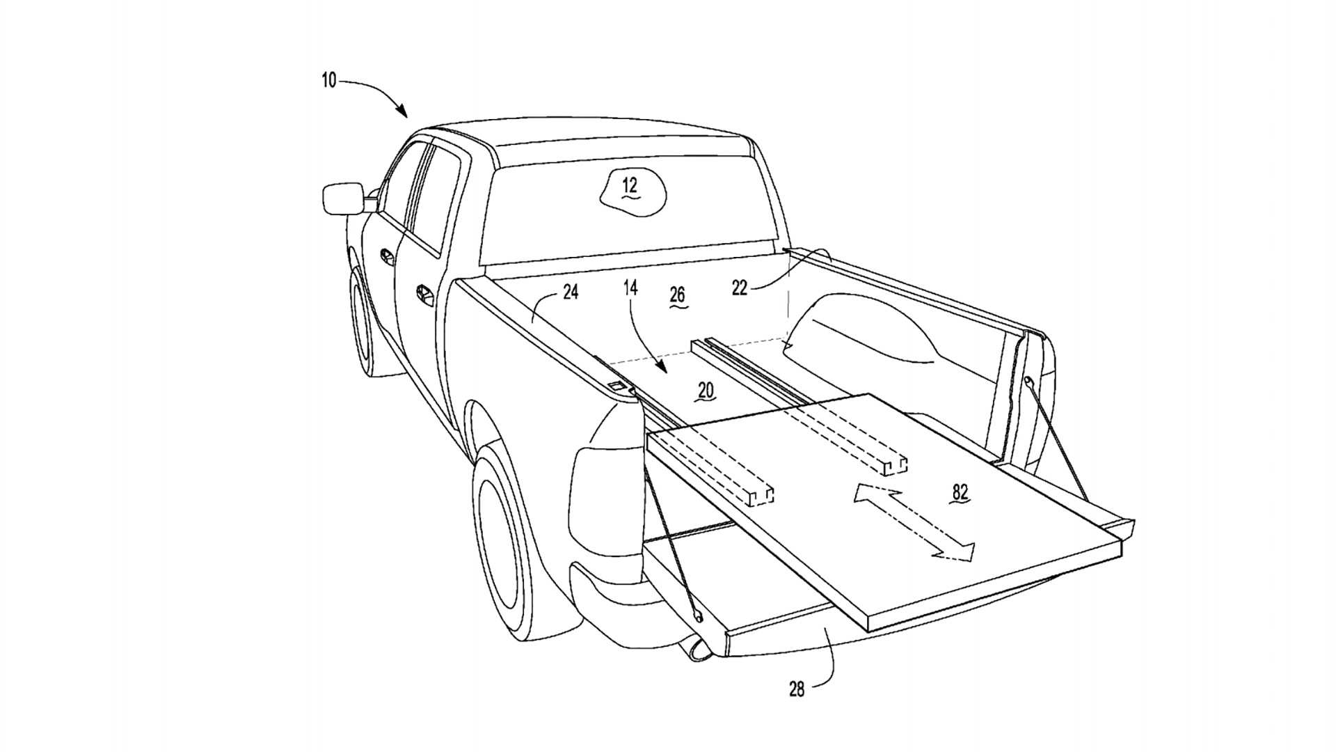 A flat tray, like the one proposed by Ford would not only be useful for storage, but could also double as a work table for owners who use their truck as a work vehicle. According to the patent, the tray would slide out by the push of a button and would stop if it noticed something was obstructing its path. Power for platform operation would come from the electric motor utilized in the hybrid powertrain.
