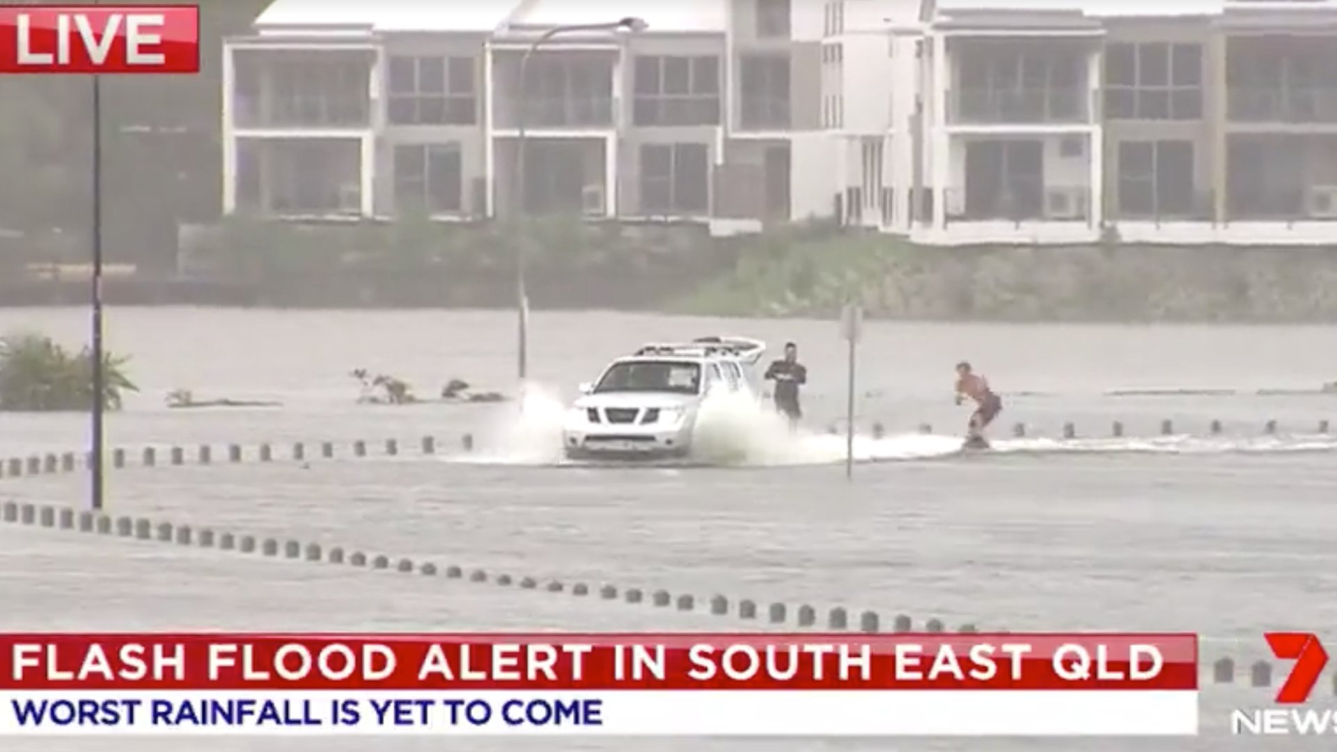The appropriate thing to do when there are potentially dangerous floodwaters on the roads outside is to leave your car parked in a safe location away from any potential contact with water. At least three people in Australia apparently decided against that when they went rogue and decided to make the most out of the flooding by water skiing behind a Nissan Pathfinder.