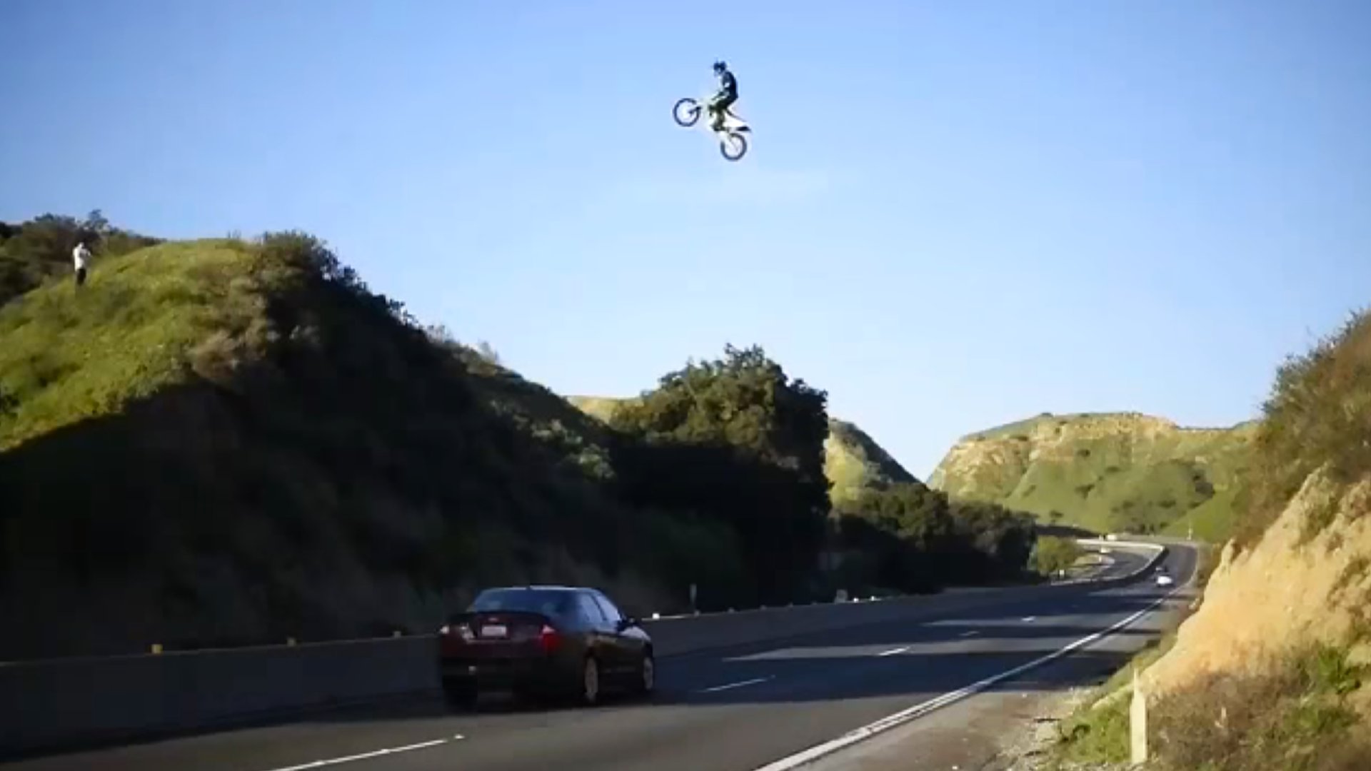 After his highway jump video went viral, Caltrans officials blocked off hillside ramp Katsandris used and announced they’d prosecute anyone who attempted a copycat stunt. This location is on private property, however, so it remains to be seen what if anything will be done to stop him from trying again once he’s recovered. Hopefully he’s learned how big is too big.
