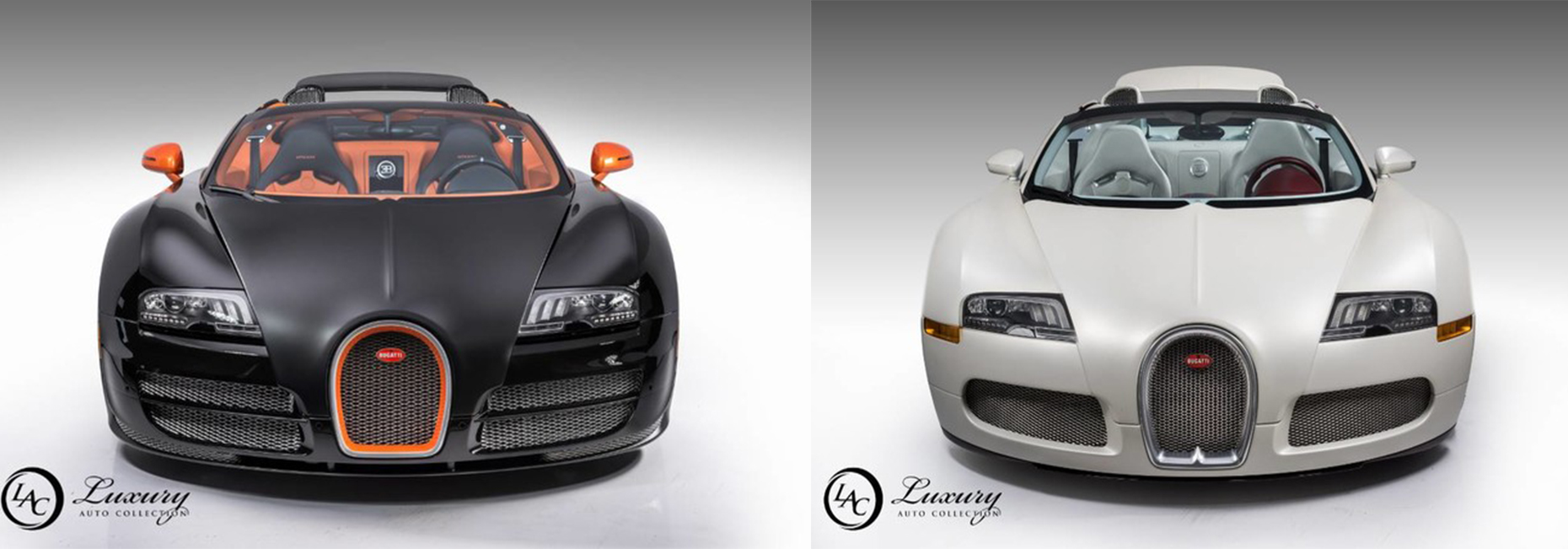 Luxury Auto Collection, based out of Scottsdale, Arizona, is tasked with selling the two multi-million dollar supercars. The 2011 Veyron Grand Vitesse, with its Pearl White matte finish, has an asking price of $2.45 million; the 2015 Veyron Grand Sport Vitesse, cloaked in a satin black finish over bare carbon fiber, is going for $3.95 million. Both cars, of course, feature Bugatti’s vaunted 8.0-liter quad-turbocharged W-16, but while the 2011 Grand Vitesse only gets by with a paltry 1,000 horsepower, the 2015 Grand Sport Vitesse gets the full 1,200 ponies.