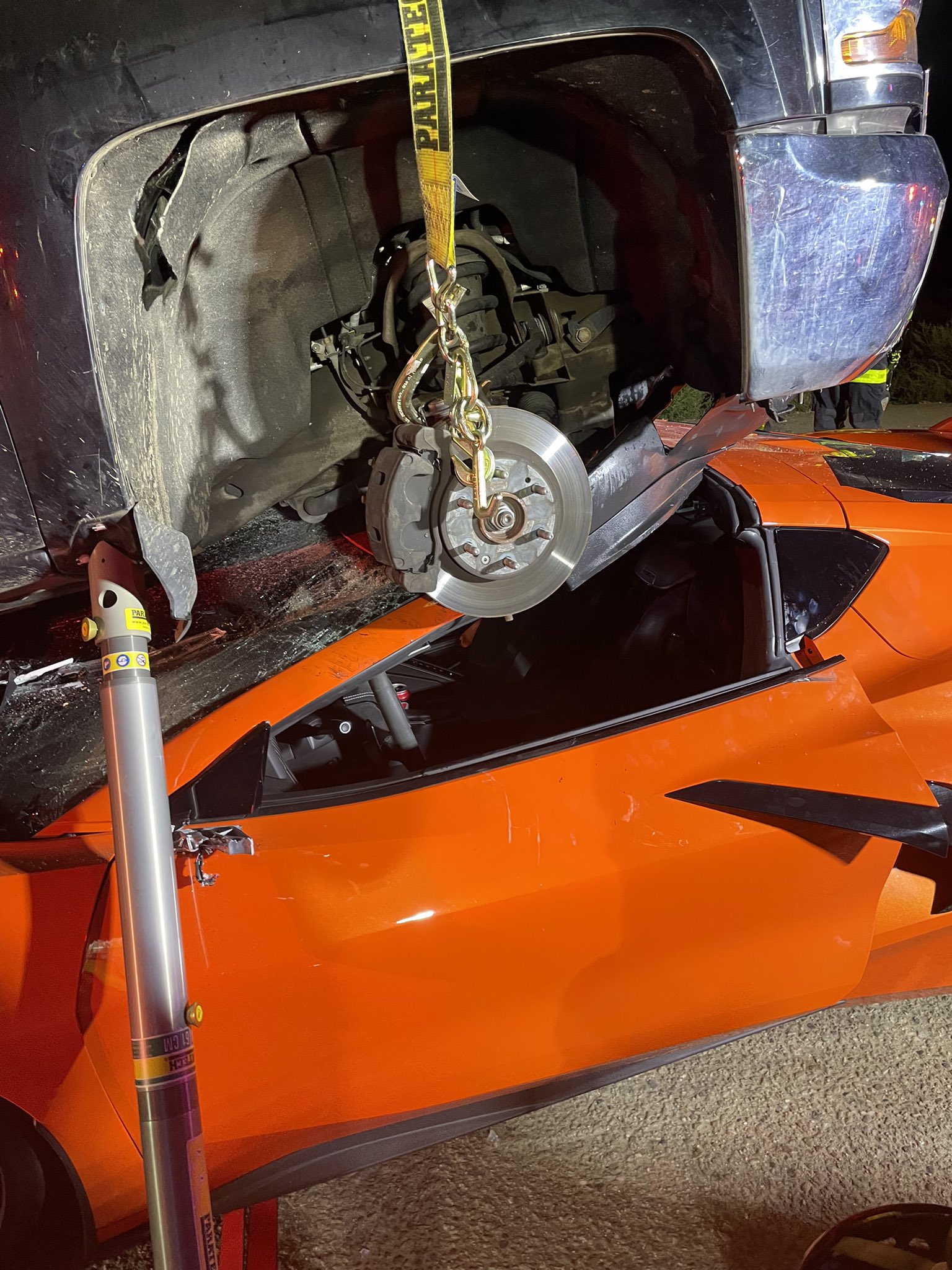 Making the Corvette’s resilience even more impressive is that it seems the driver had the roof panel off during this crash. So even with the top “down,” the Silverado’s weight still couldn’t crush the pillars enough to hurt anyone. As remarkable as that is, it must have been initially horrifying for the front passenger to see the Silverado’s front wheels almost directly above their face.