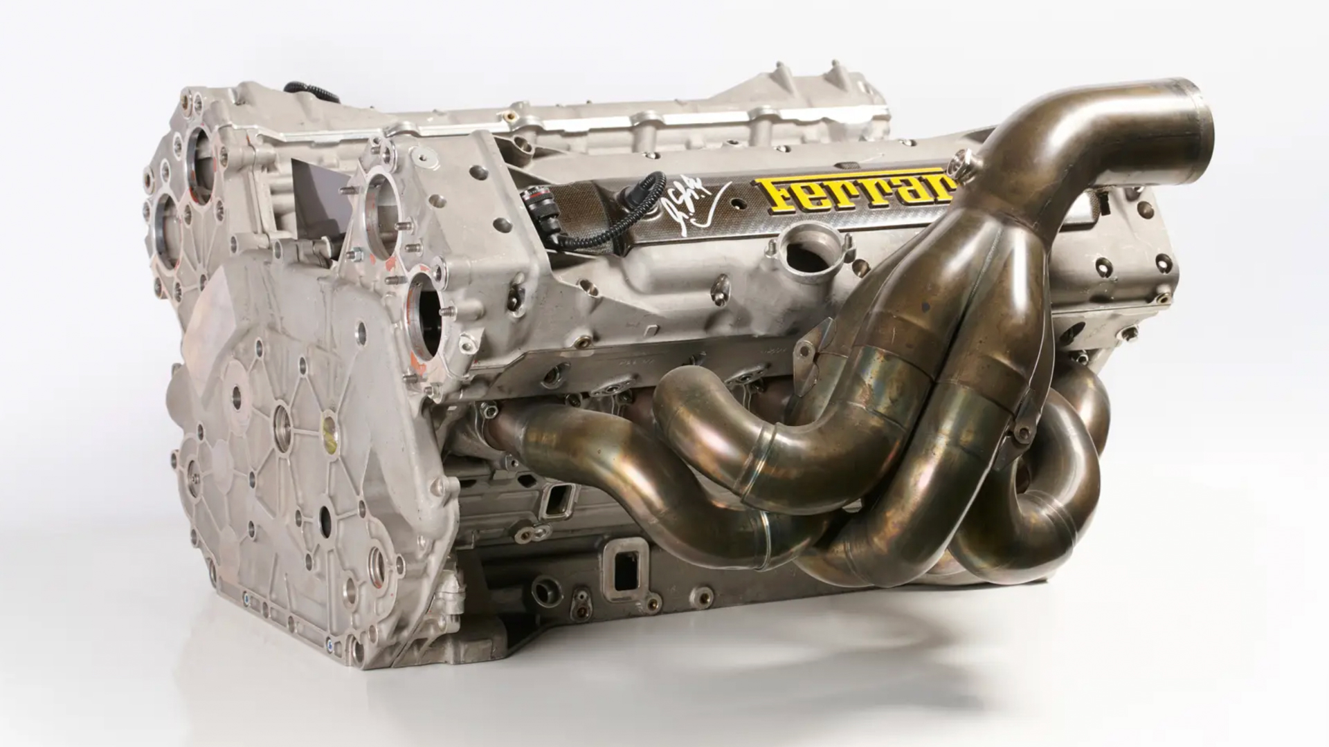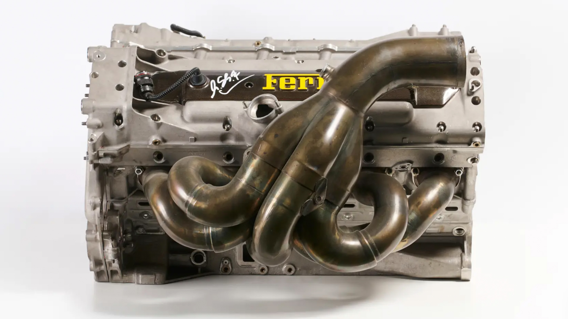 This F300 motor comes from the collection of former F1 engineer Nigel Stepney, perhaps best known for his involvement in the “spygate” saga that rocked the 2007 season. It turns out that Stepney held quite an impressive collection of F1 memorabilia before he died in 2014, including a racing suit worn by Ayrton Senna. This engine is one of the collection’s coolest pieces, as it comes with numerous numbered parts like an exhaust manifold, crankshaft, two camshafts, and a set of numbered gears.