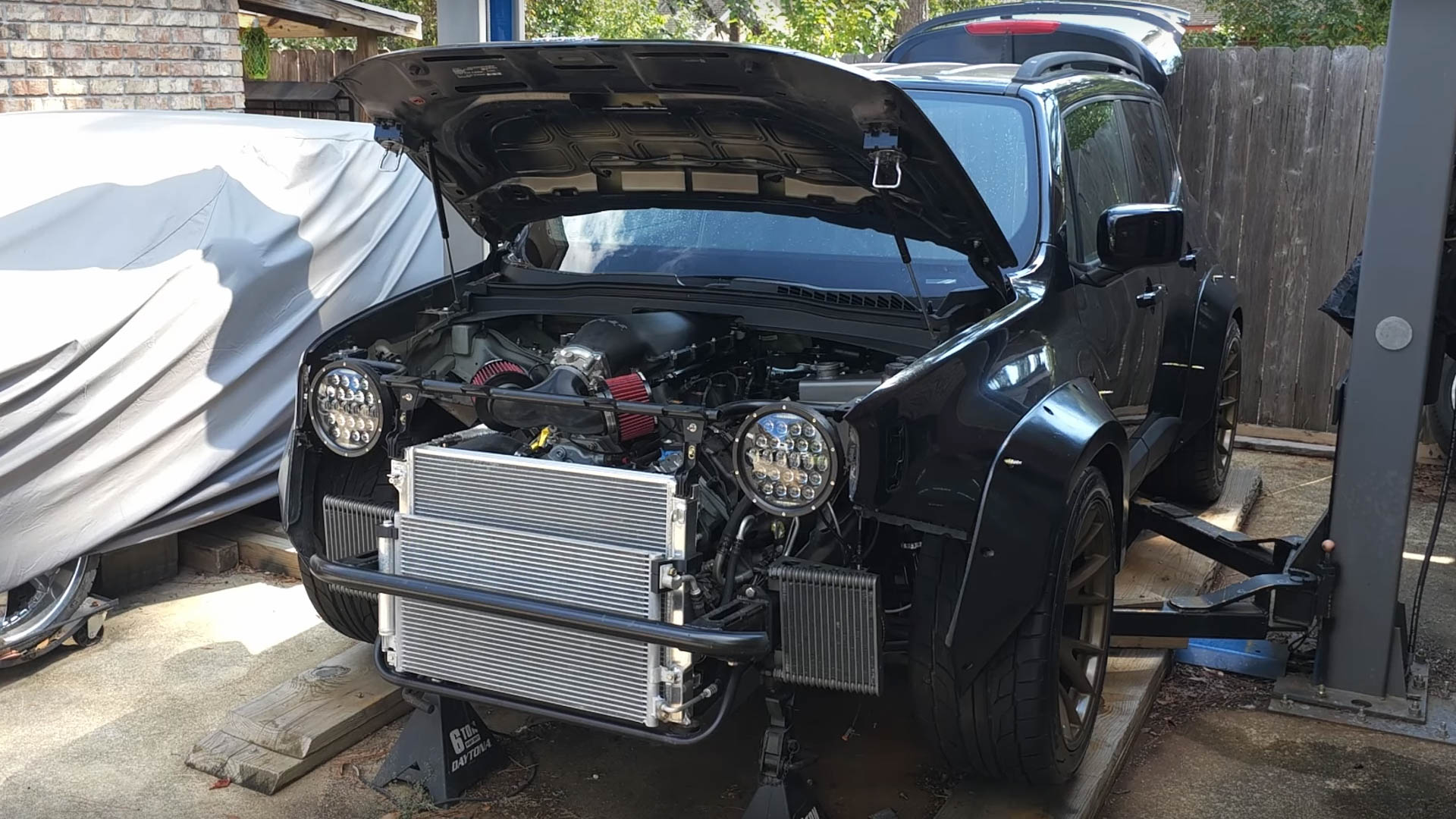 Mike Martin already had a 2015 Jeep Renegade, with a custom-fabricated widebody kit and air ride suspension, but he wanted to make something genuinely special out of it. So he secured the powertrain, electronics, and interior from a wrecked Dodge Charger R/T donor car and got to work.