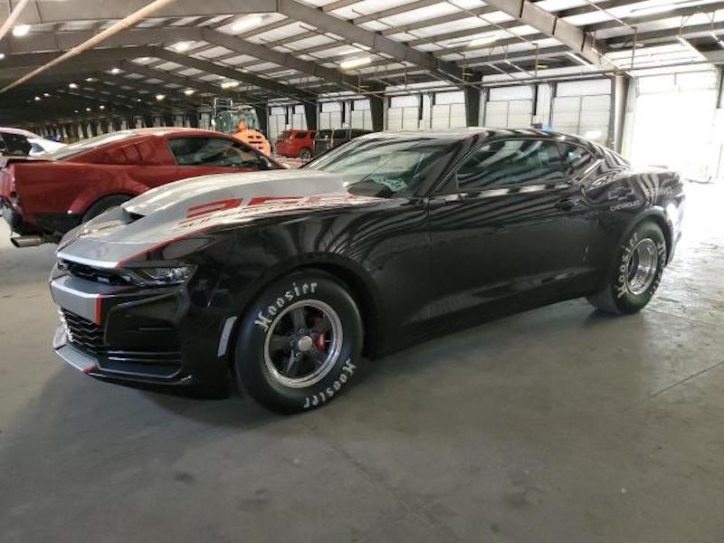 The COPO Camaro is listed for sale from Copart‘s Louisville, Kentucky lot, and is said to be the second of 69 made for 2020. It’s a factory drag car that pays tribute to the original COPO Camaros, which were essentially special-order workarounds to get higher-performing Camaros than General Motors’ internal politics allowed. The COPO cars of today, though, aren’t road cars; they’re purpose-built drag cars, with a roll cage, drag slicks, wheelie bar, parachute, and of course, a 350 cubic-inch, supercharged LSX V8 that revs to 9,500 rpm. The result? A factory Chevy that can run eight-second passes in the quarter mile.
