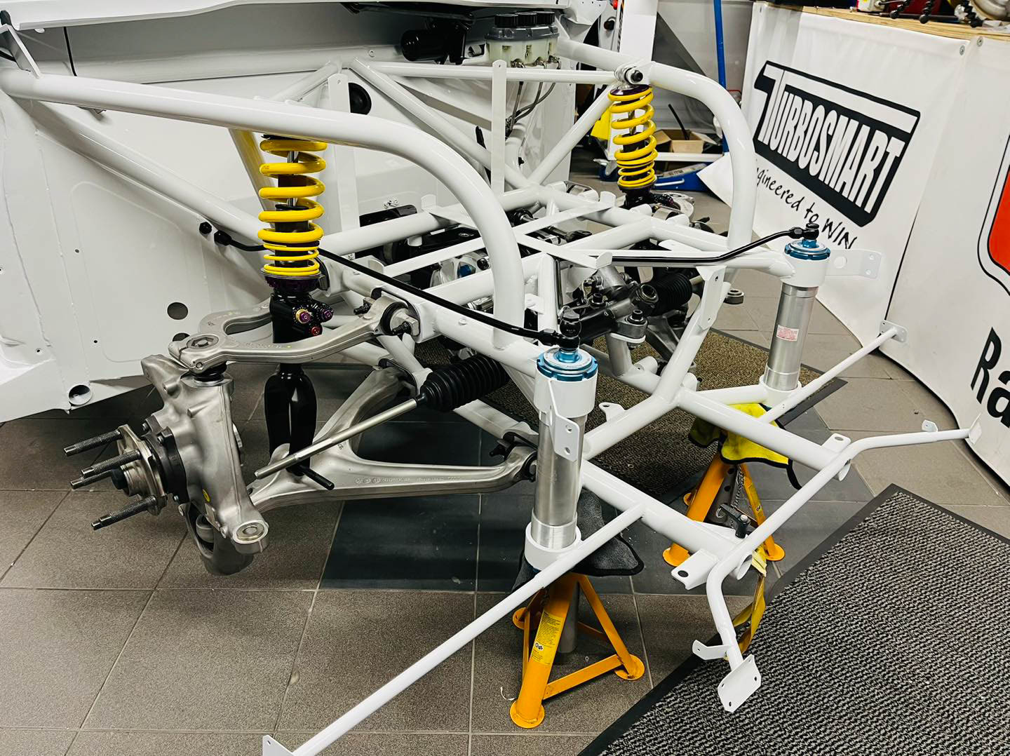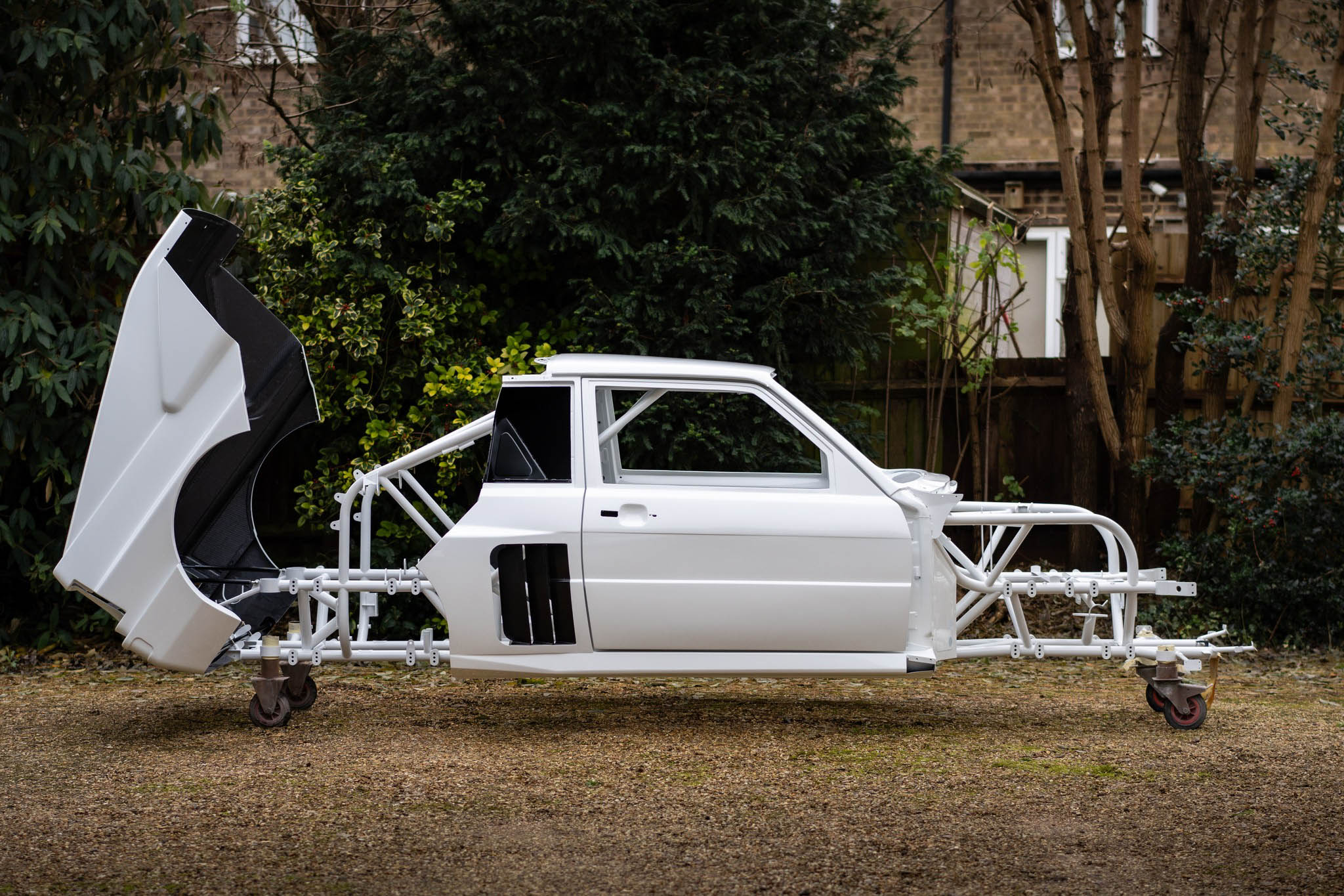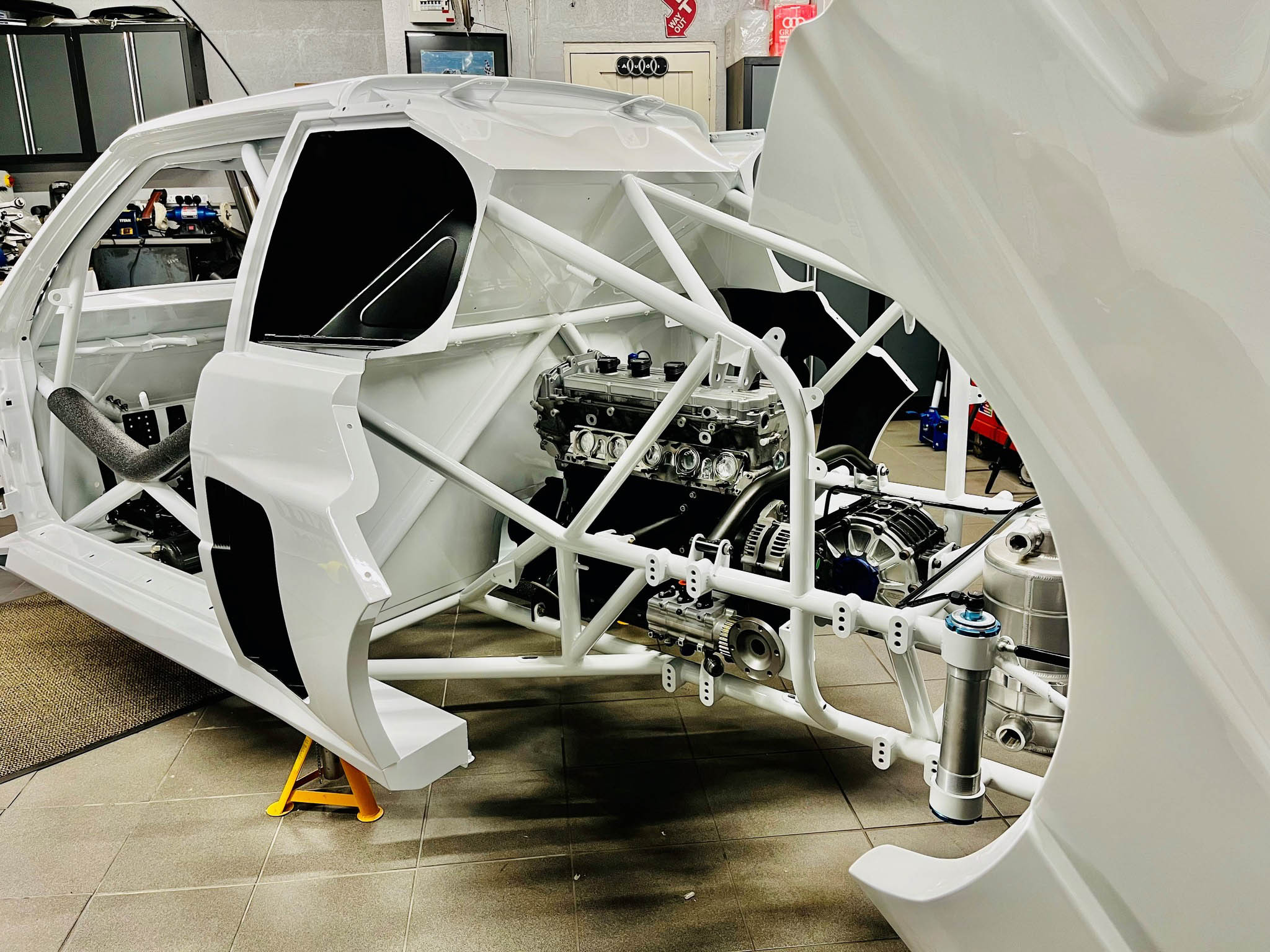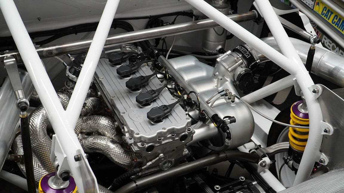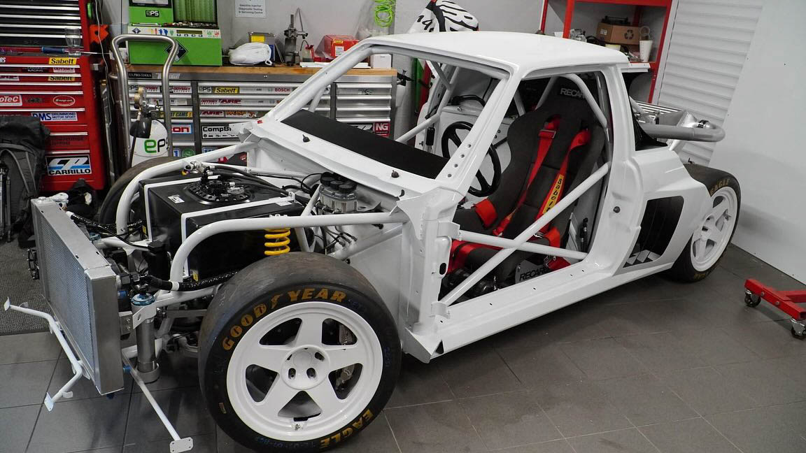 That’s where EPSmotorsport comes in. They started with a ’90s Audi Coupe Quattro, completely stripped the body off, and made an entire tubular Chromoly chassis for it. Then, a carbon fiber body was built to match the original. A small model of the RS001 was bought from Germany, scanned, and scaled up so they could make it as accurate as possible, despite the only prototype ever built having been destroyed in the 1980s.