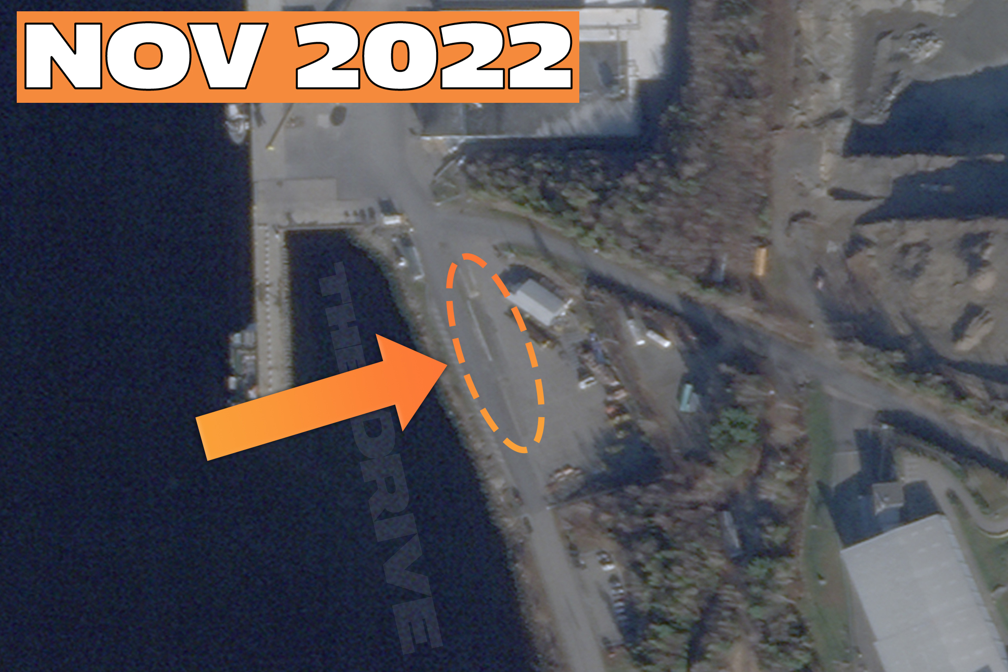 And so, the rails allegedly have been torn up as of 2023. Exclusive satellite photos show the flatbed rail cars that rode on the 200 feet of track have been removed and may be stored adjacent to the building to its northwest. A Reddit user claiming to be a local wrote that “the rails have actually been removed and the area paved over.” The resolution of the satellite photos isn’t enough to determine whether that had happened as of November 2022 when the latter photo was taken, and they did not respond to an inquiry at the time of publication.