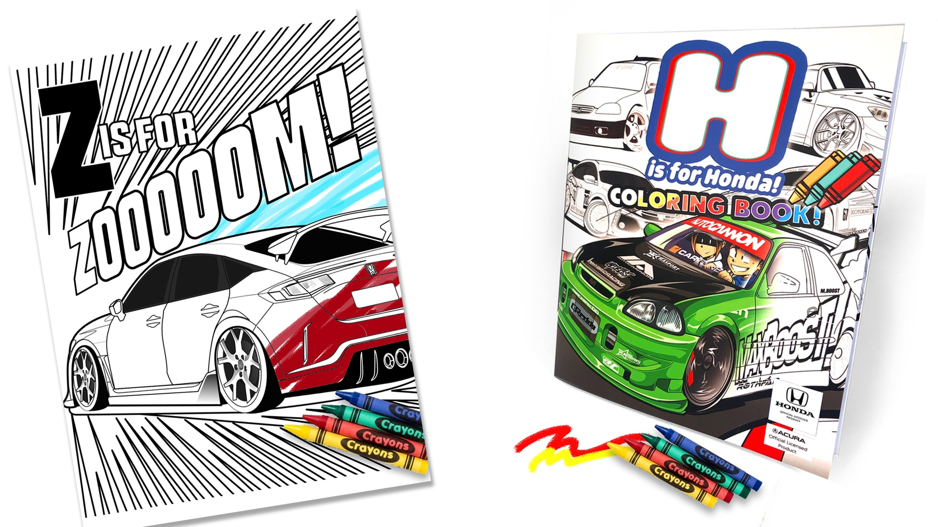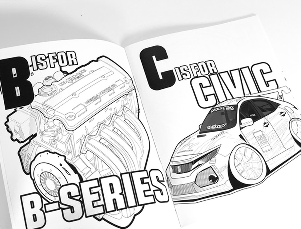 The creator of the classic tuner comic Max Boost! launched a successful Kickstarter campaign for his new coloring book H is for Honda! earlier this week. The books aim to teach kids young children the A-B-Cs of car culture using Honda-themed pages that they can color, including models such as the Accord, Civic, Integra, NSX, Odyssey, Prelude, S2000, Acura ARX, and more.