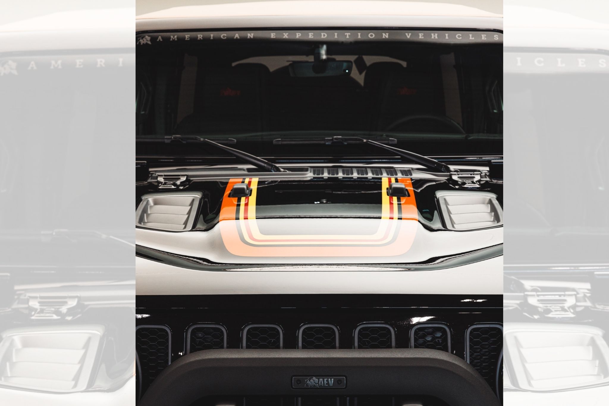 For a limited production run, AEV is offering retro-styled Jeep Wrangler and Gladiator Classic editions. They’re available in white or black at Rubicon trim level with period-correct orange, yellow, and black decal striping on the sides and hood. You wouldn’t be remiss if you were having flashbacks of Schoolhouse Rock and macramé wall hangings. As Streetside Classics so eloquently put it in its description of a 1981 Jeep Renegade, this color scheme is the off-road equivalent of the Trans Am Firebird hood decal.