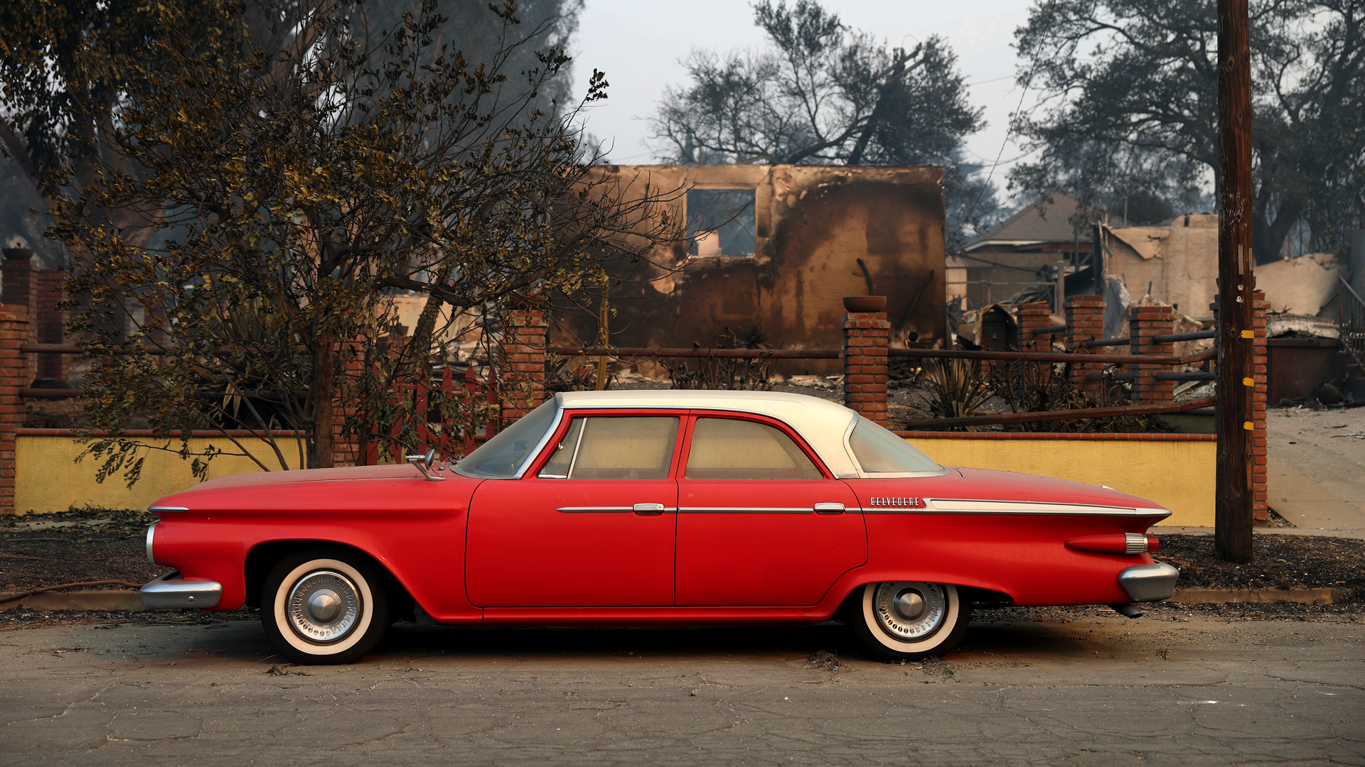 That expression is overused and often incorrect, but it applies here. These vintage cars, excellently captured by Getty photojournalist Justin Sullivan, still sit in front of burned-down homes, almost entirely unharmed. A few have some light scorching, and one Oldsmobile Cutless is a bit melty at the back, but the majority of them are fine. Ironically, almost all of the vintage cars in these photos are American, save for the one lonely Volkswagen Beetle. While there are likely several factors that saved these cars from fiery demise, one factor is that they’re made entirely from metal and glass on the outside.