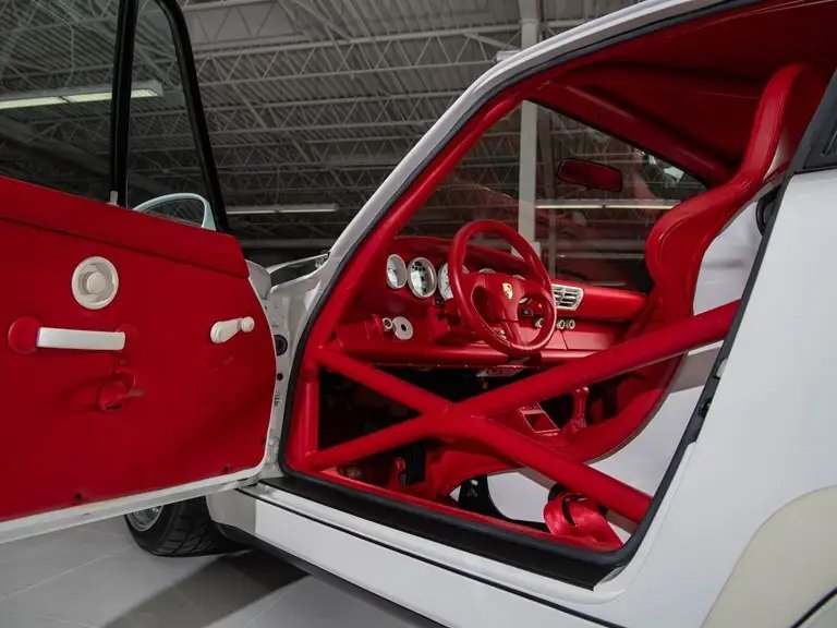 The 1993 Porsche 911 Carrera RSR 3.8 is another highlight, being essentially a race car modified to better suit the street. It has a rather unique red interior, with many trim pieces upholstered in white leather. Gauge bezels, air vents, and door locks were all given a leather coat, as were the rollbars and fire extinguisher lines. Other race-spec features include the air-jack system, 120-liter fuel cell, and “Le Mans” race-spec engine. It has just 70 kilometers (43 miles) on the clock from new, though we’re told the engine has regularly been started and run to operating temperature to keep it in a healthy condition during its time in the White Collection.