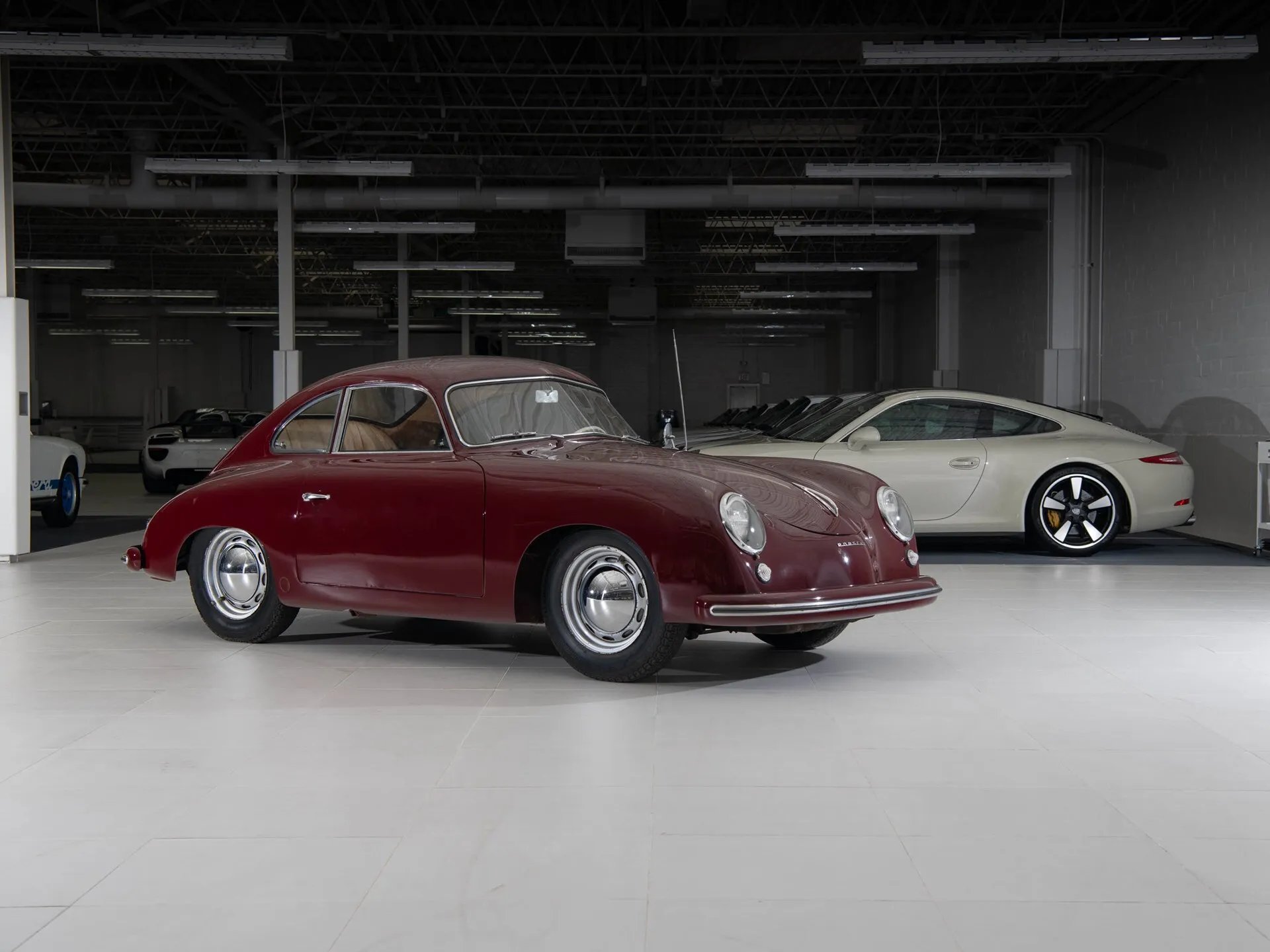 Meanwhile, some of the collection’s cars are off-white. Starting in 1956, for example, Porsche’s whitest white was the distinctly yellowish ivory shade. A 1959 Porsche 356A Carrera 1600 from the collection wears this shade well, which helps it stand out from the rest of the collection. There’s also a 1979 911 Turbo Coupe in a sandy Band-Aid beige, along with a distinctly un-white 1953 Porsche 356 in a charming burgundy hue. Fans of the more modern Porsche product will be pleased to know the majority is finished in more appealing shades of pure white.