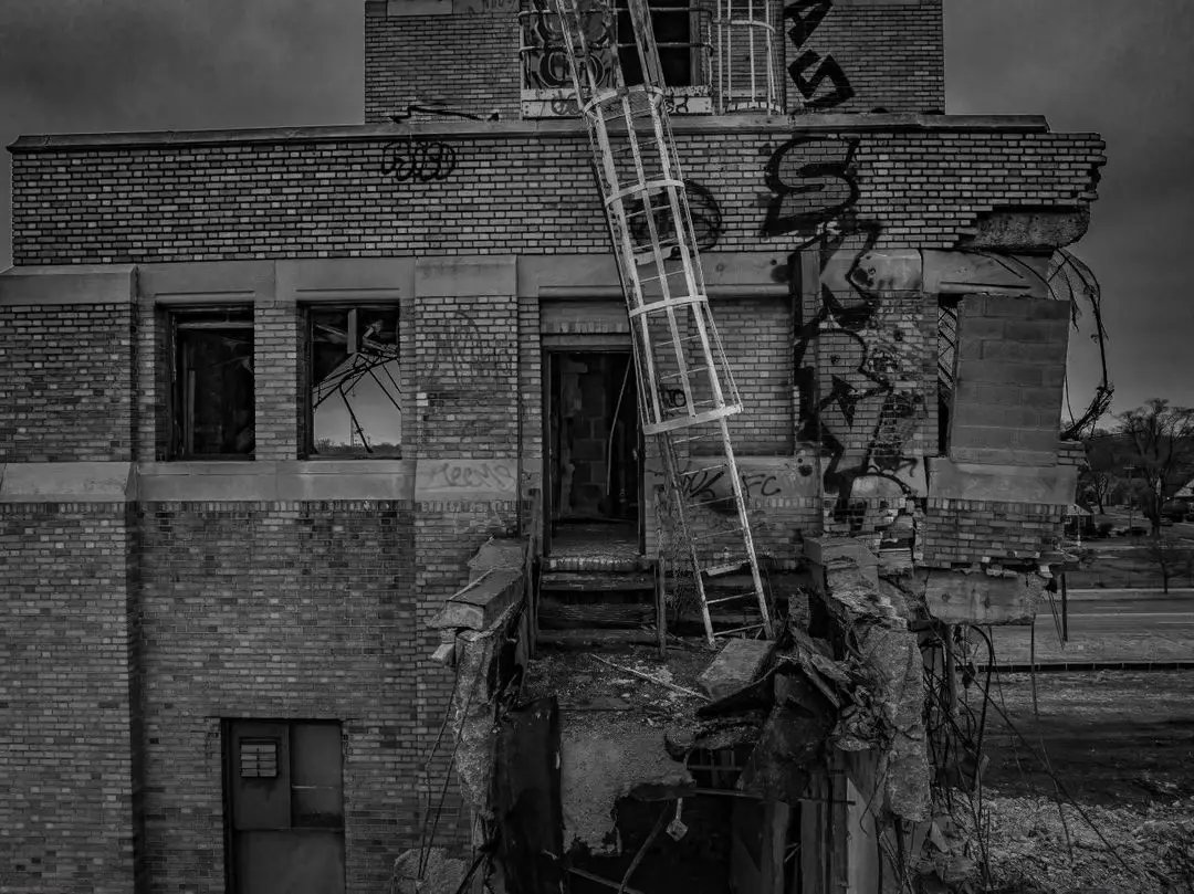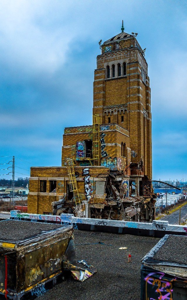 The complex then sat abandoned, decaying in the public eye, prompting Detroit’s mayor to describe the site as “ruin porn.” That is, until recently, when demolition operations began ahead of the land’s redevelopment. The process was photographed by Detroit-area photographer Andrew Russell, who captured images of the buildings’ destruction using a drone. His photos show much of the entrance building leveled except for the central tower, while part of the main complex behind it has apparently already been leveled. In time, the tower, too, shall fall.