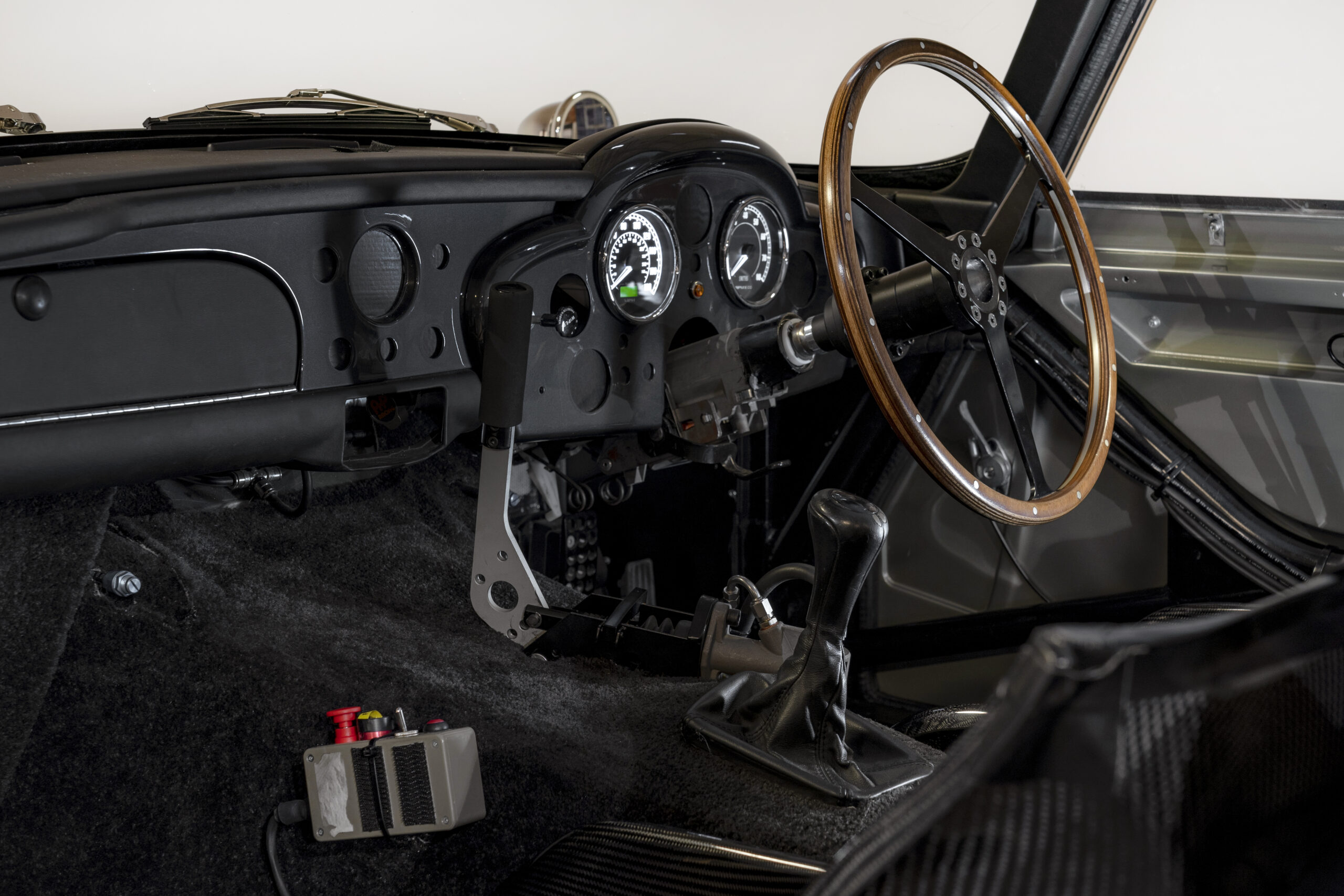 Both cars feature prominently in the film, with both driven by Bond himself. This particular DB5 stunt car features the aforementioned retractable headlights with machine guns, prop bomblets, and a rotating digital license plate. It also looks like it’s fitted with a roll cage for safety in stunt sequences, a stripped-out interior, a hydraulic drift handbrake, and a manual transmission. Some damage completes the look, though it isn’t clear if the scratches are fake or real.