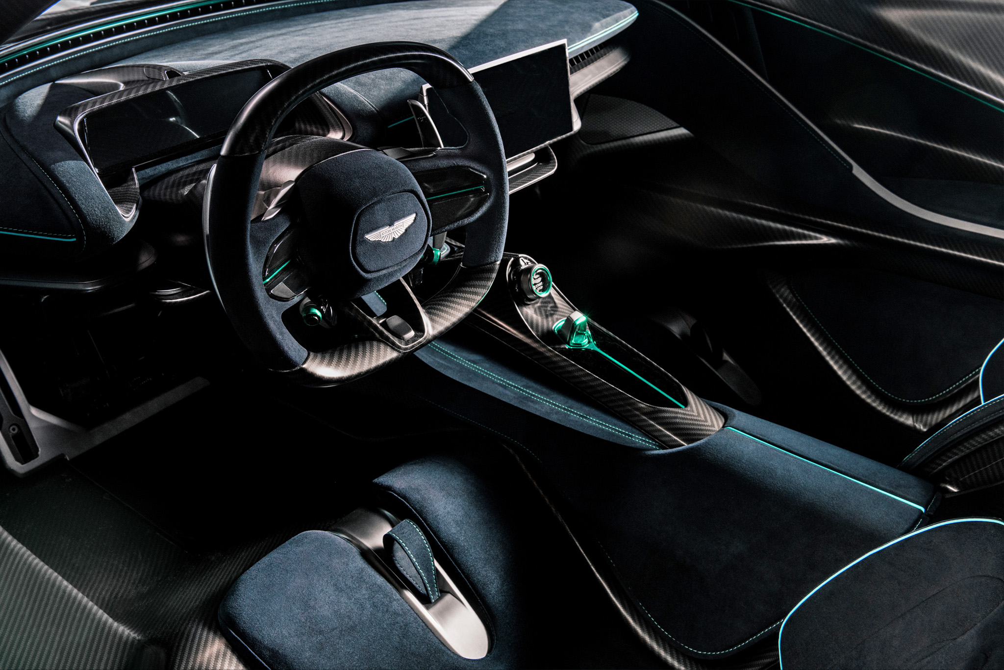 The same computational fluid dynamics—fancy language for flow simulation—software the company uses for its F1 cars was utilized to optimize the Valhalla’s aerodynamics. With a full carbon tub and body, the car can be sculpted very precisely to create road-hugging grip, especially at high speeds. The vehicle uses active front and rear wings as well as a sculpted floor to achieve 1,323 pounds of downforce at around 150 miles per hour.